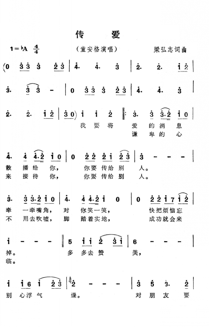 《传爱》简谱 童安格