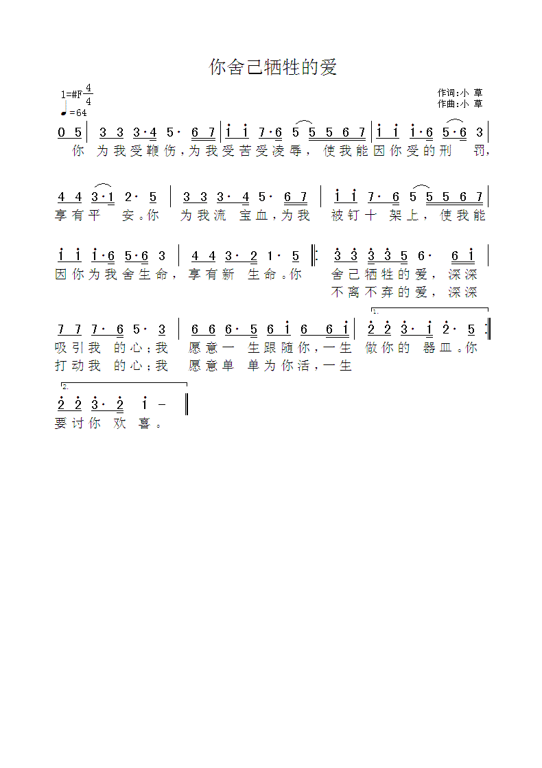 《你舍己牺牲的爱》简谱