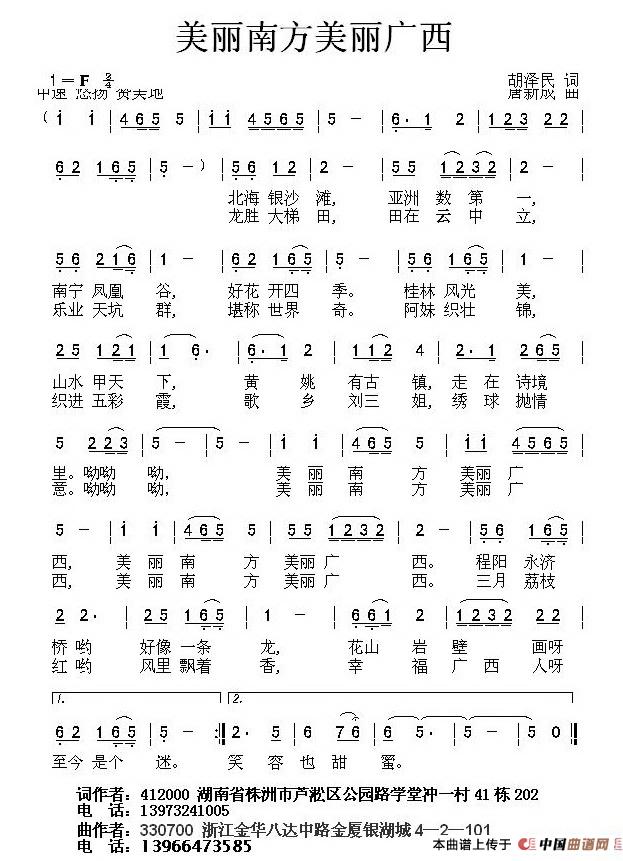 《美丽南方美丽广西》简谱