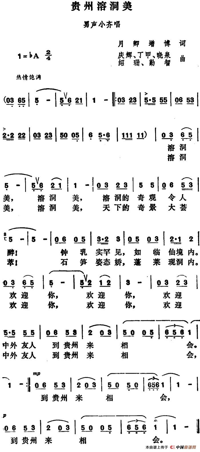 《贵州溶洞美》简谱