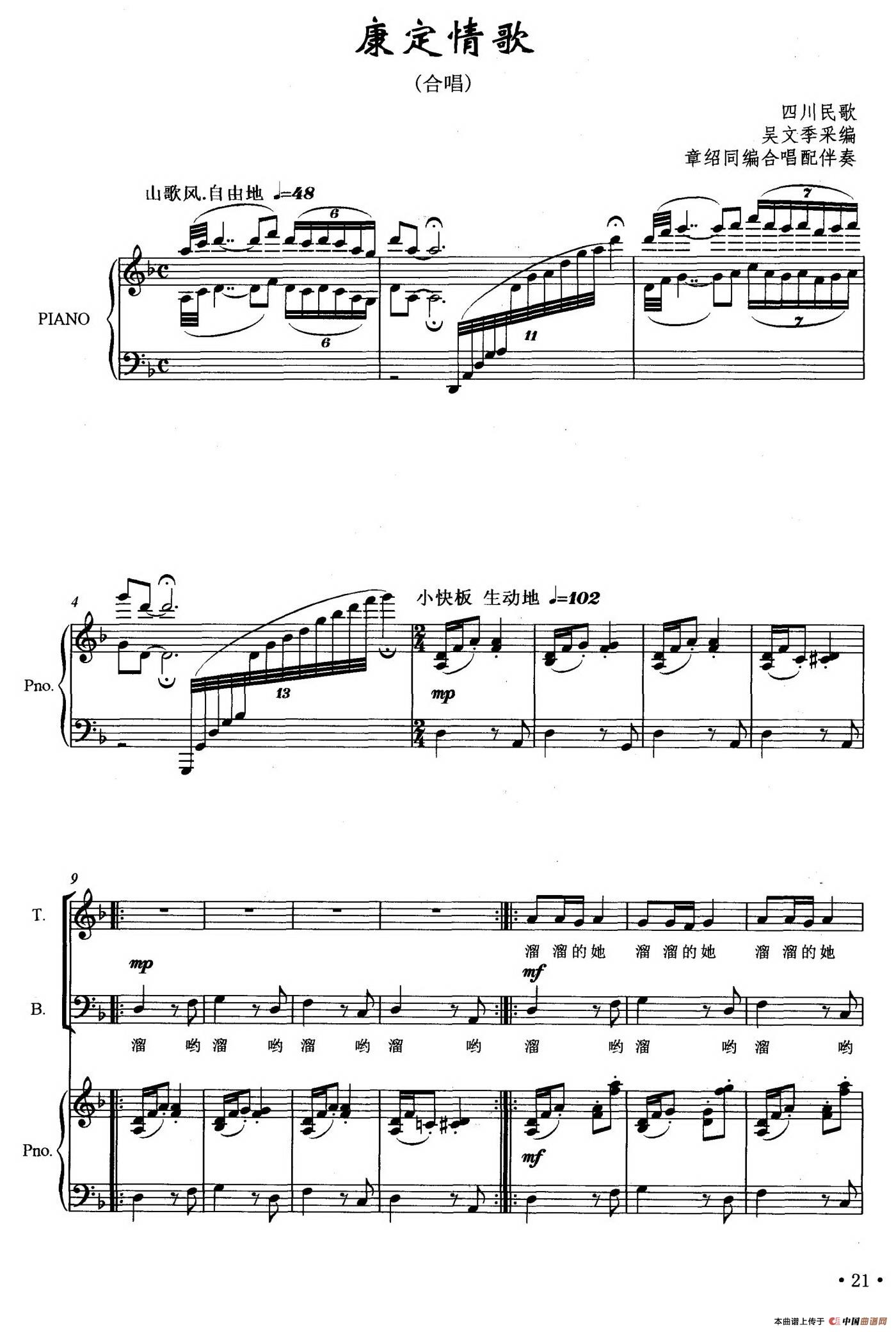 《康定情歌(四川民歌、吴文采采编、章绍同编合唱、正谱)》简谱