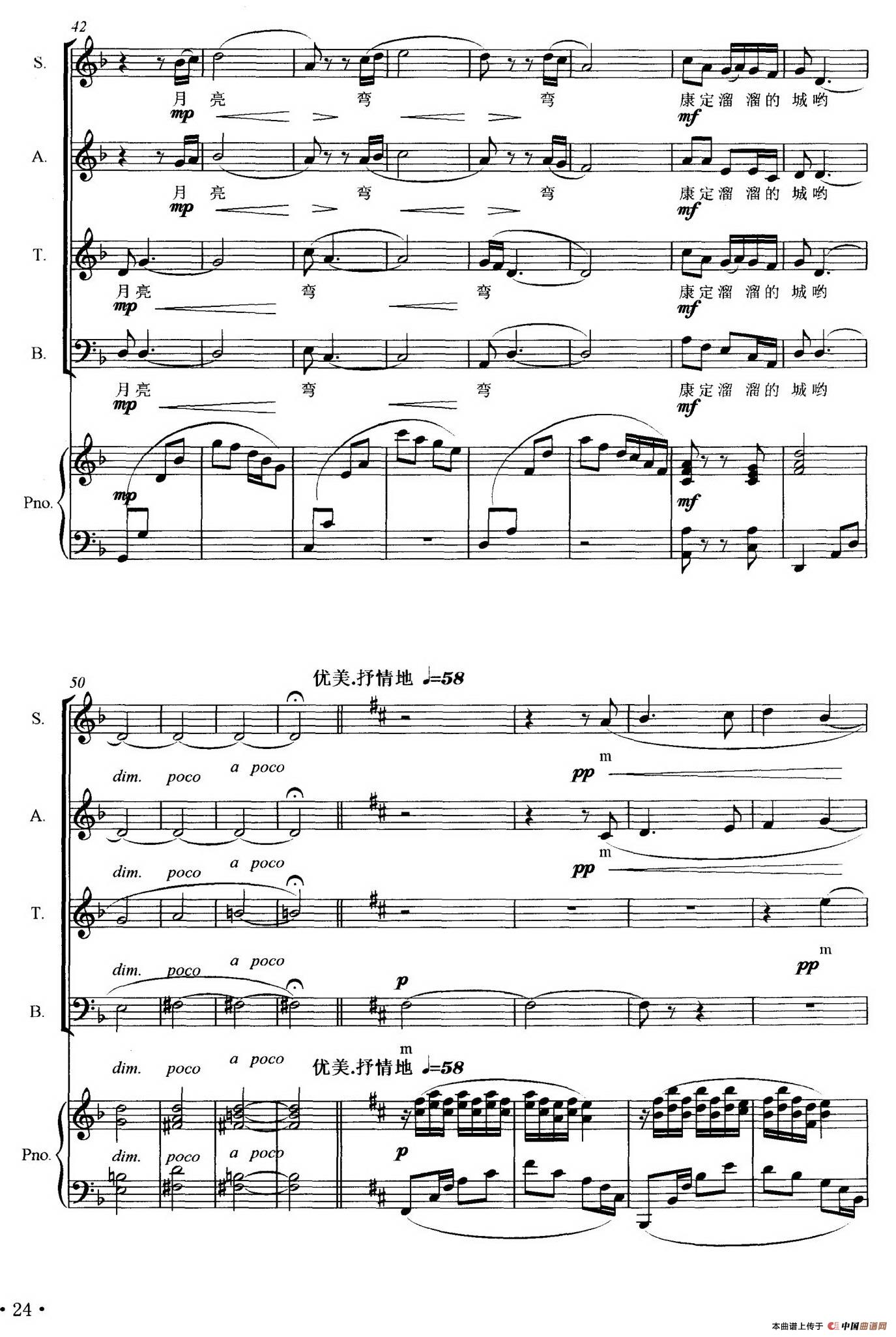 《康定情歌(四川民歌、吴文采采编、章绍同编合唱、正谱)》简谱 第4张