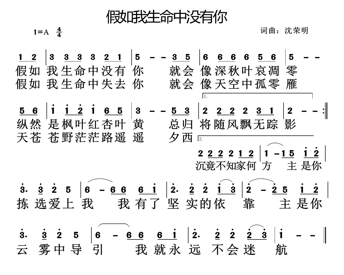 《假如我生命中没有你》简谱