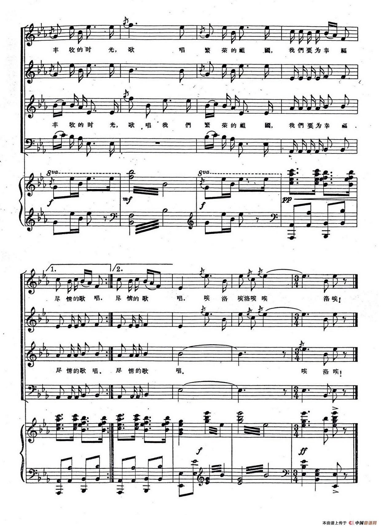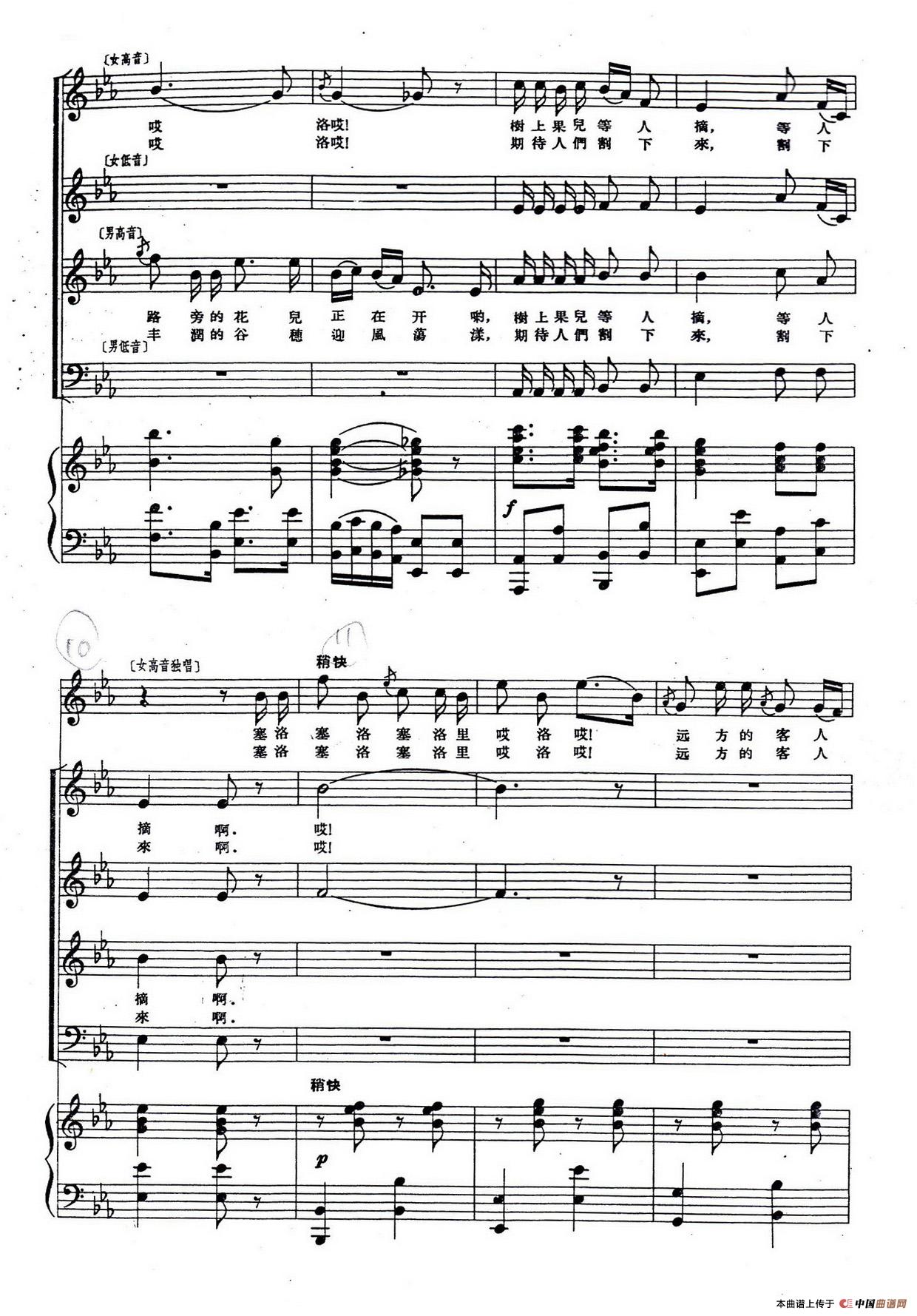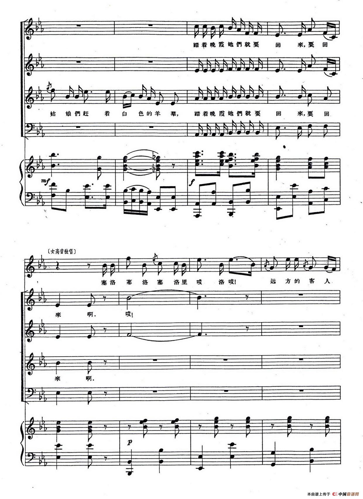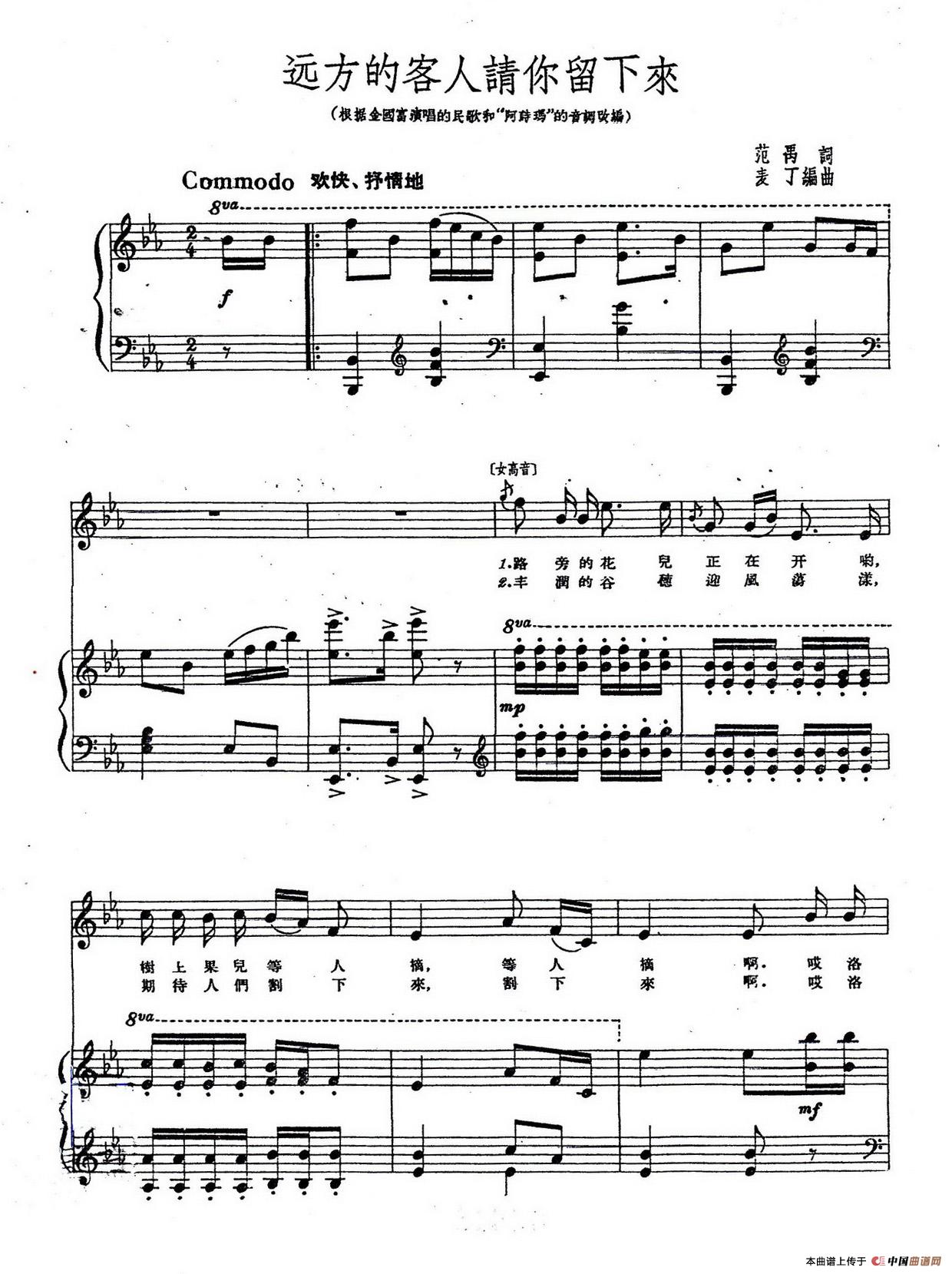 《远方的客人请你留下来(正谱)》简谱 1.辽宁通信之声合唱团 2.中央民族歌舞团