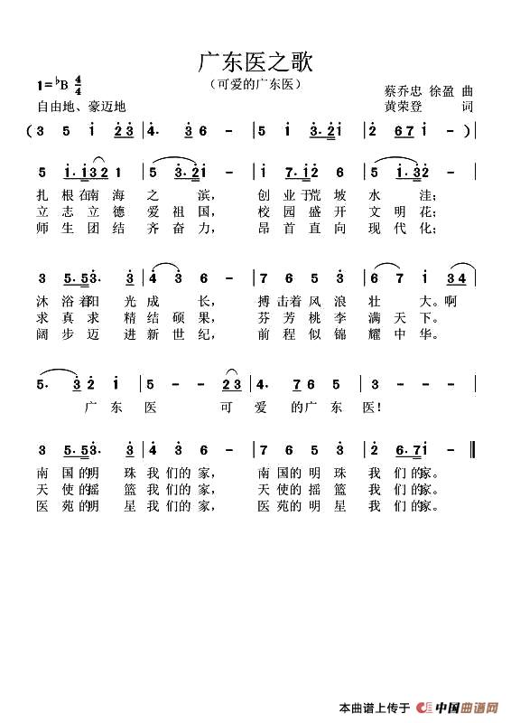 《广东医之歌》简谱