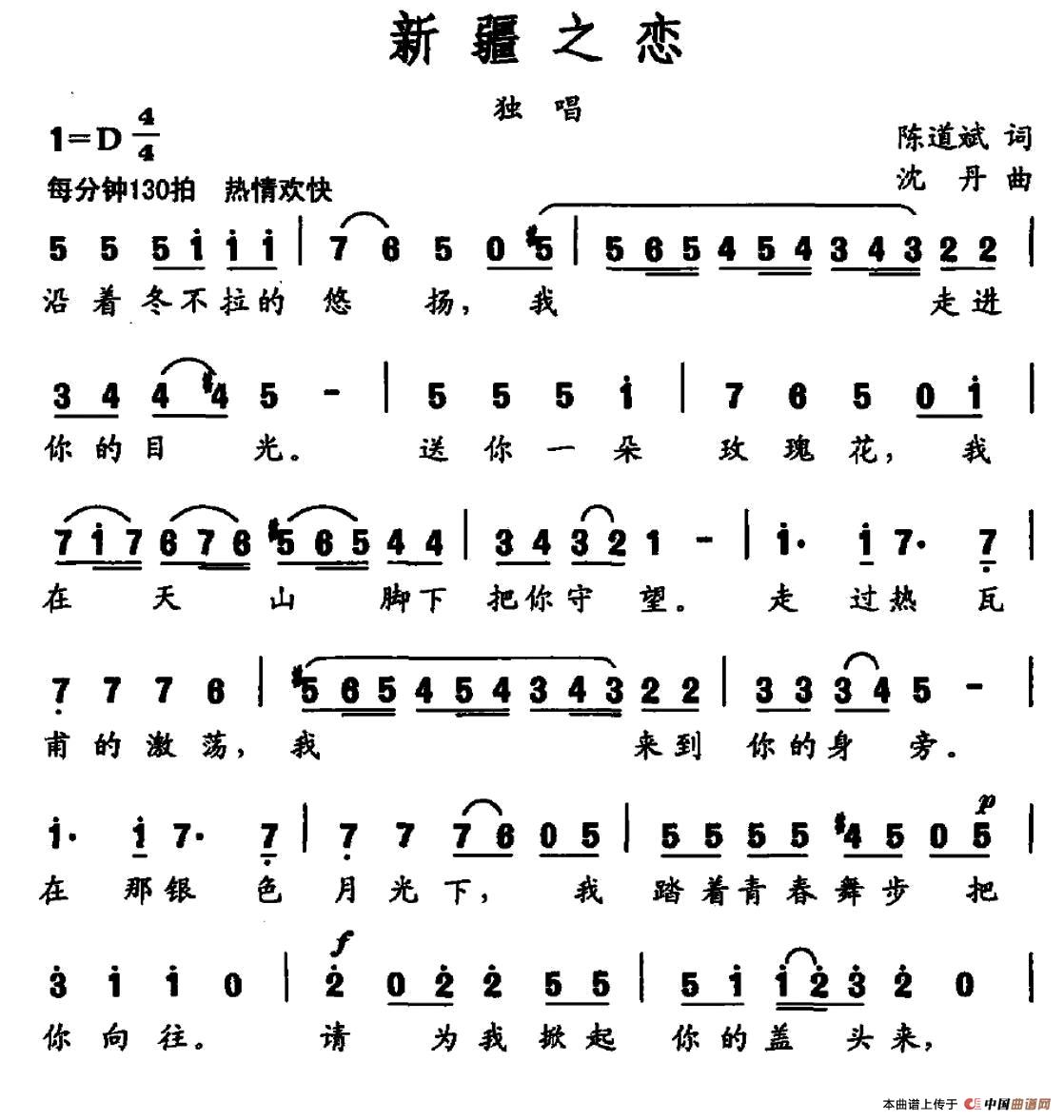 《新疆之恋》简谱