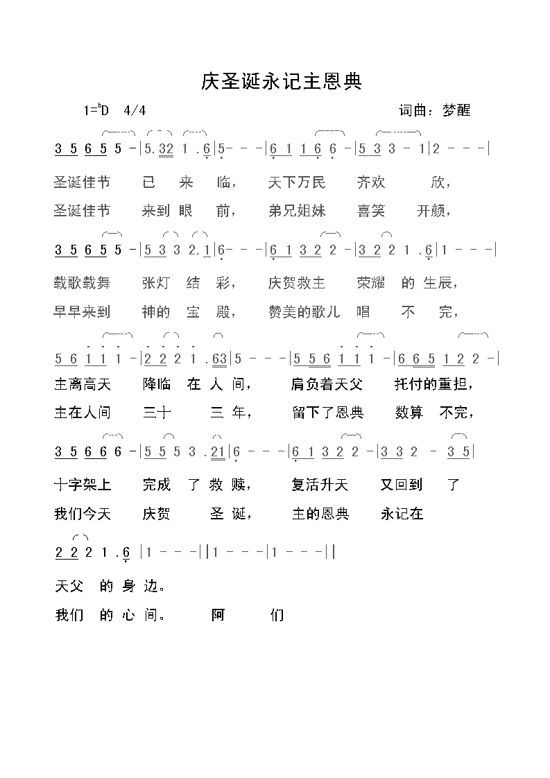 《庆圣诞永记主恩典》简谱 梦醒
