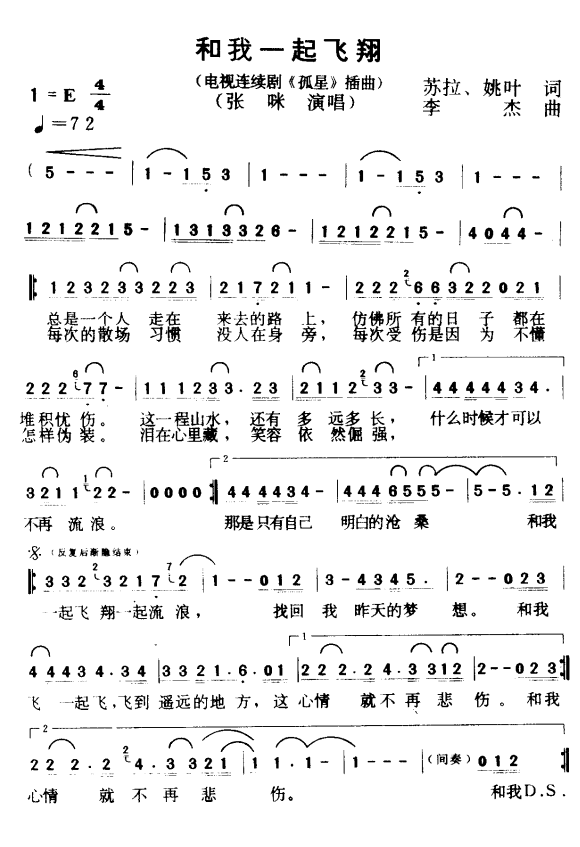 《和我一起飞翔(电视剧《孤星》插曲)》简谱 张咪