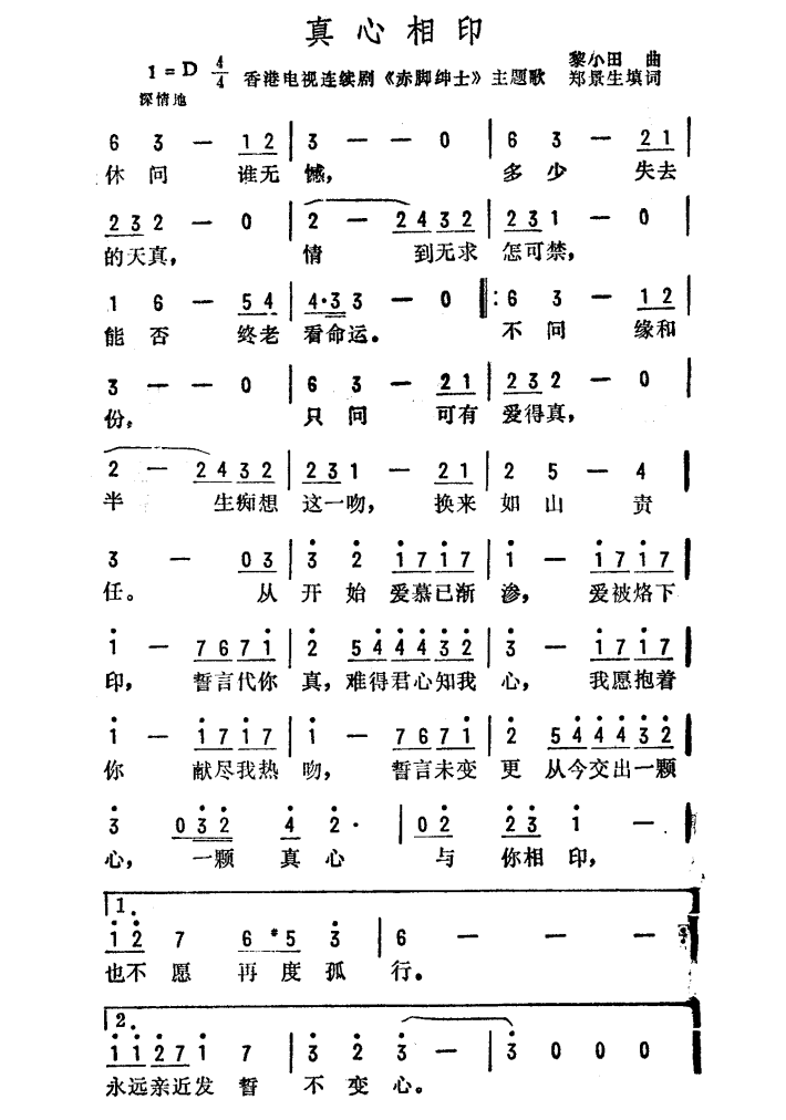 《君心知我心(真心相印香港电视连续剧《赤脚绅士》主题歌)》简谱 吕方