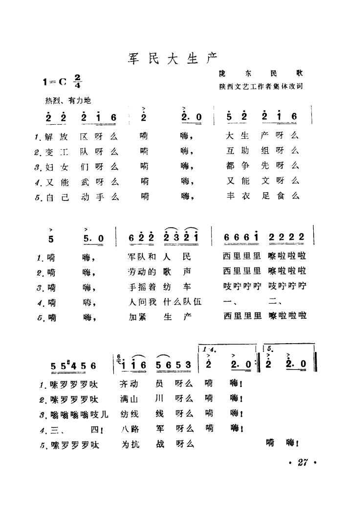 《陕甘宁边区革命民歌五首》简谱 陕西省歌舞团第6张