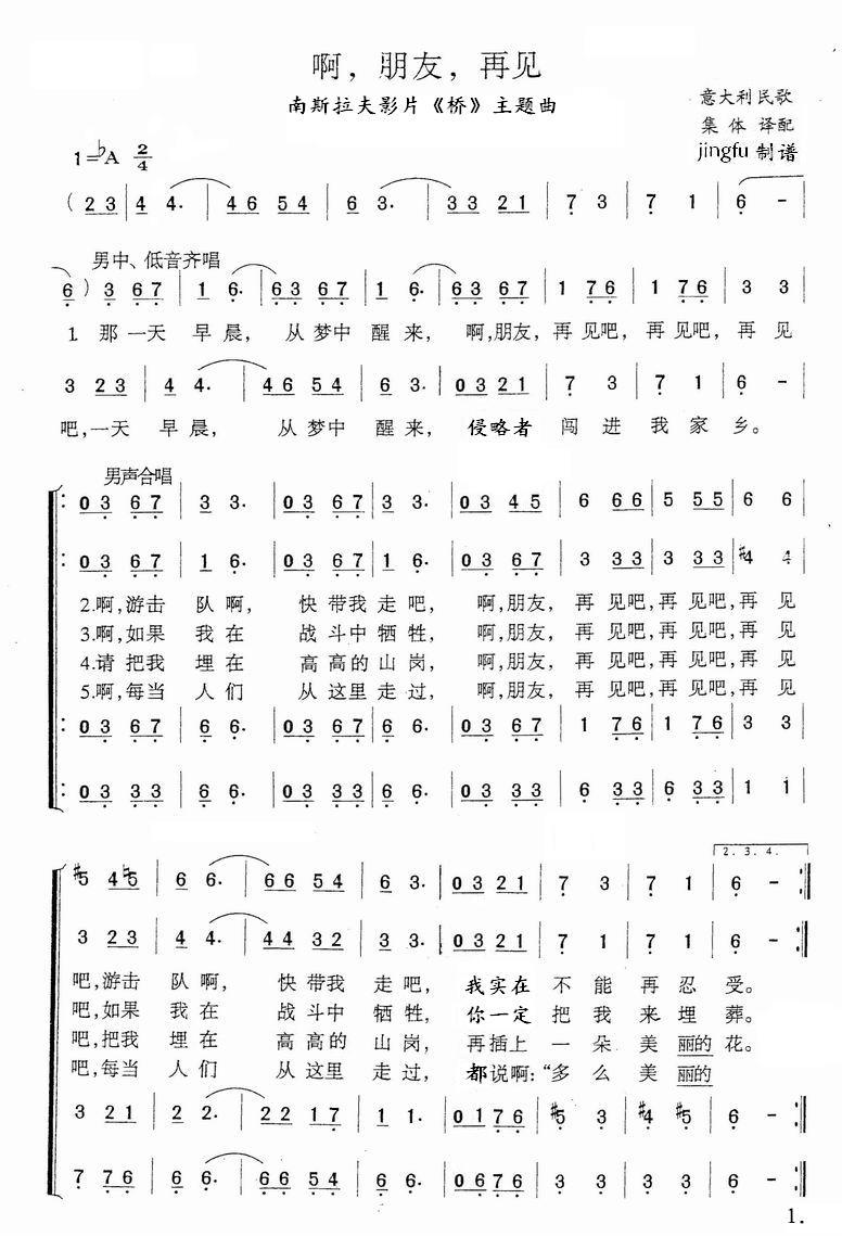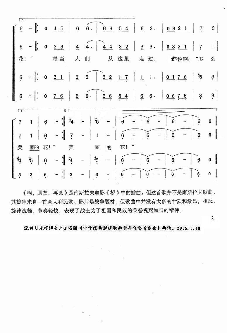 《啊,朋友,再见(简版男声合唱)》简谱 深圳月光银海男声合唱团