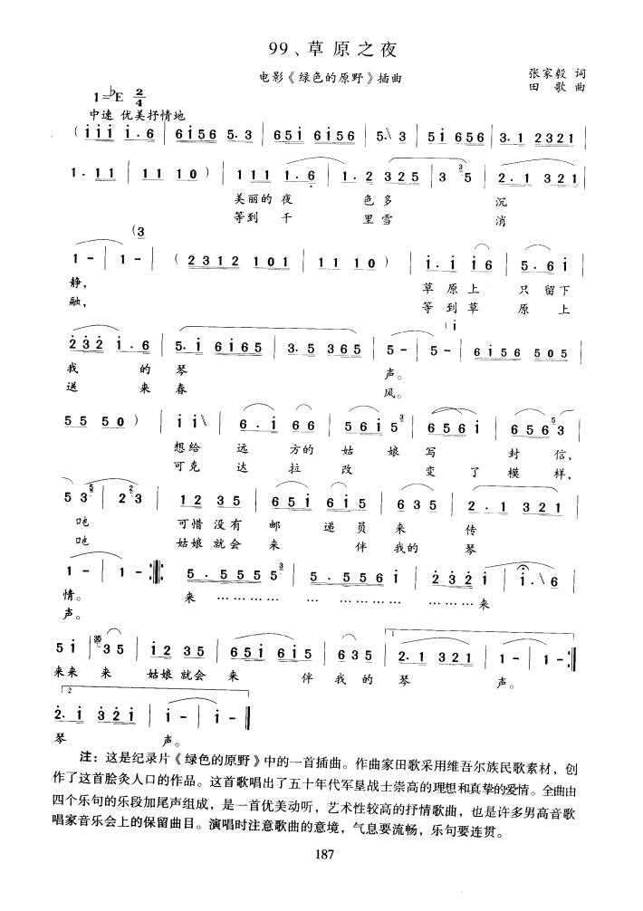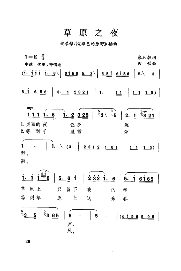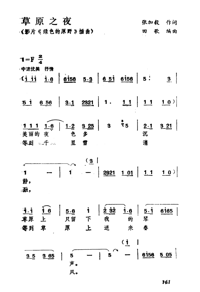 - 草原之夜(记录影片《绿色的原野》插曲)