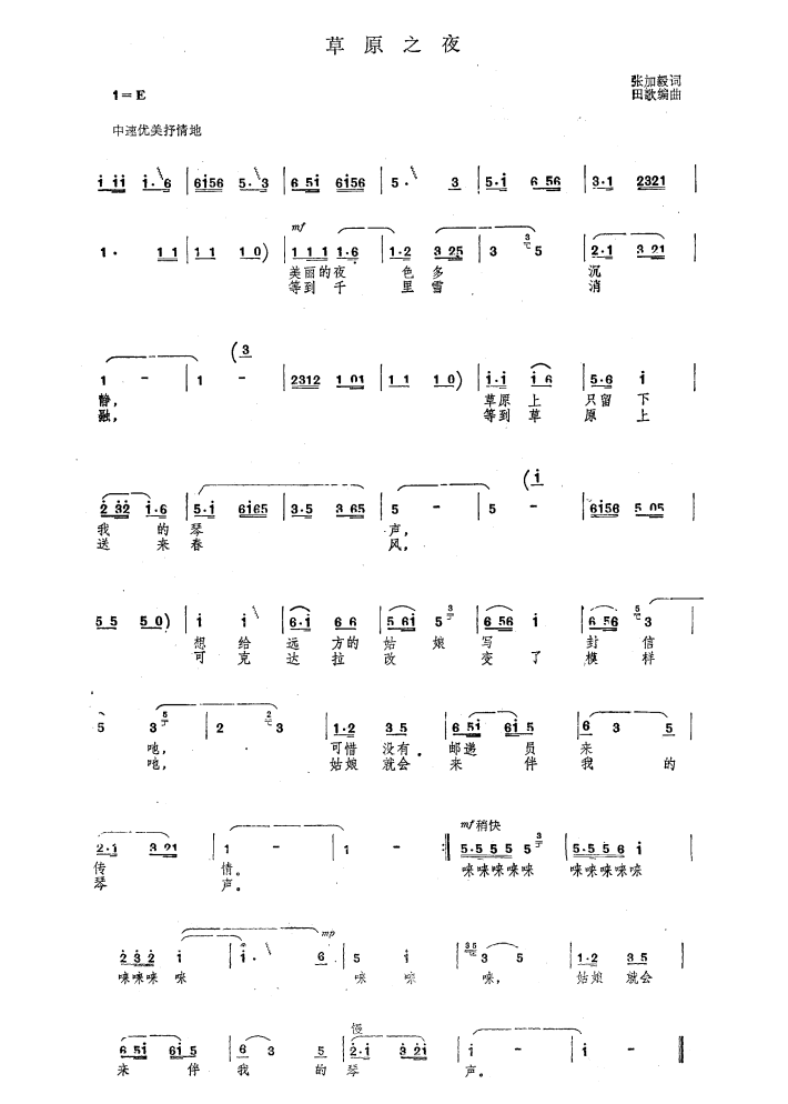 《草原之夜(电影《绿色的原野》插曲)》简谱 孟贵彬