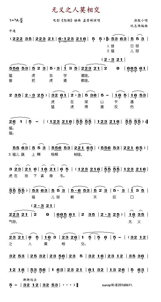 《无义之人莫相交(电影《怒潮》插曲)》简谱 孟贵彬