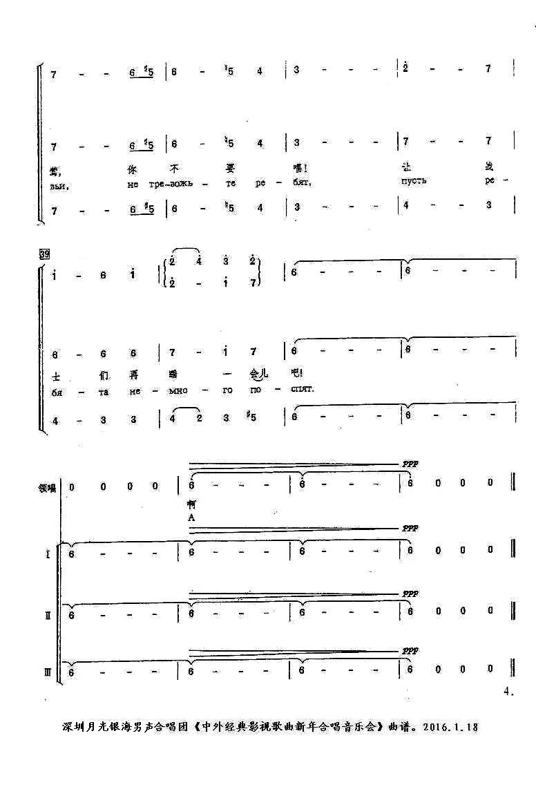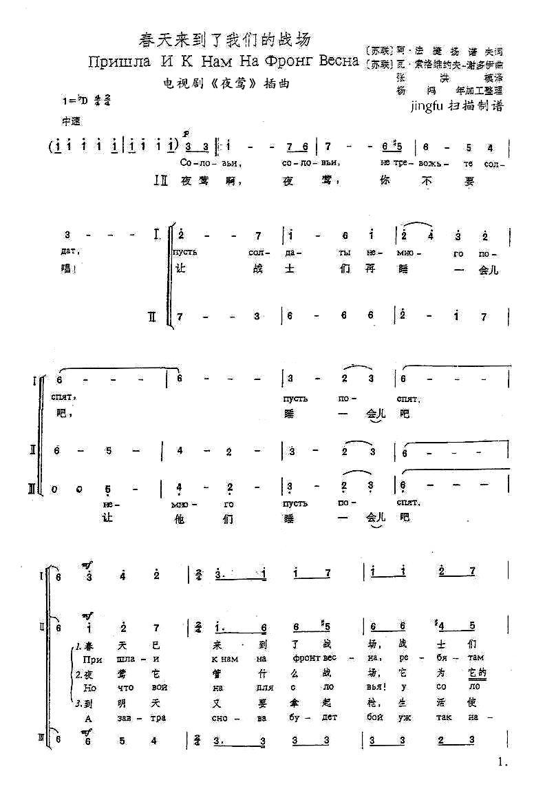 《春天来到了我们的战场(中俄双语男声合唱)》简谱 深圳月光银海男声合唱团