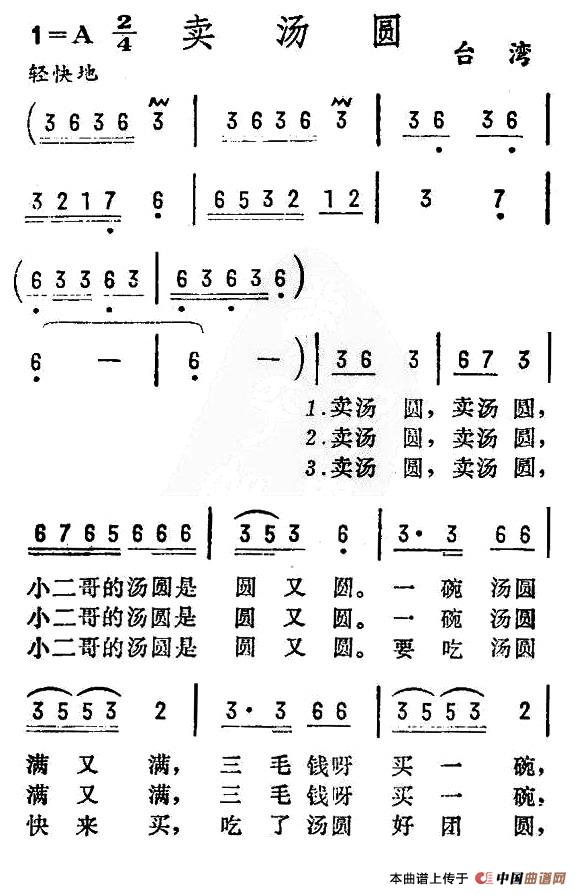 《卖汤圆(台湾民歌)》钢琴谱 点这里