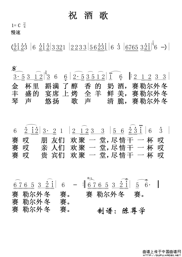 《祝酒歌(蒙古民歌)》简谱