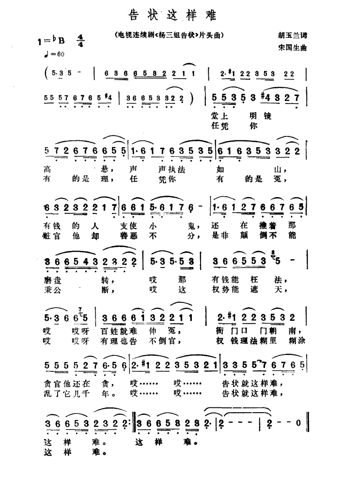 《告状这样难(电视连续剧《杨三姐告状》片头曲)》简谱 董兰萍