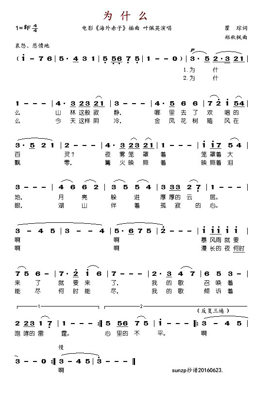 《为什么(电影《海外赤子》插曲)》简谱 叶佩英