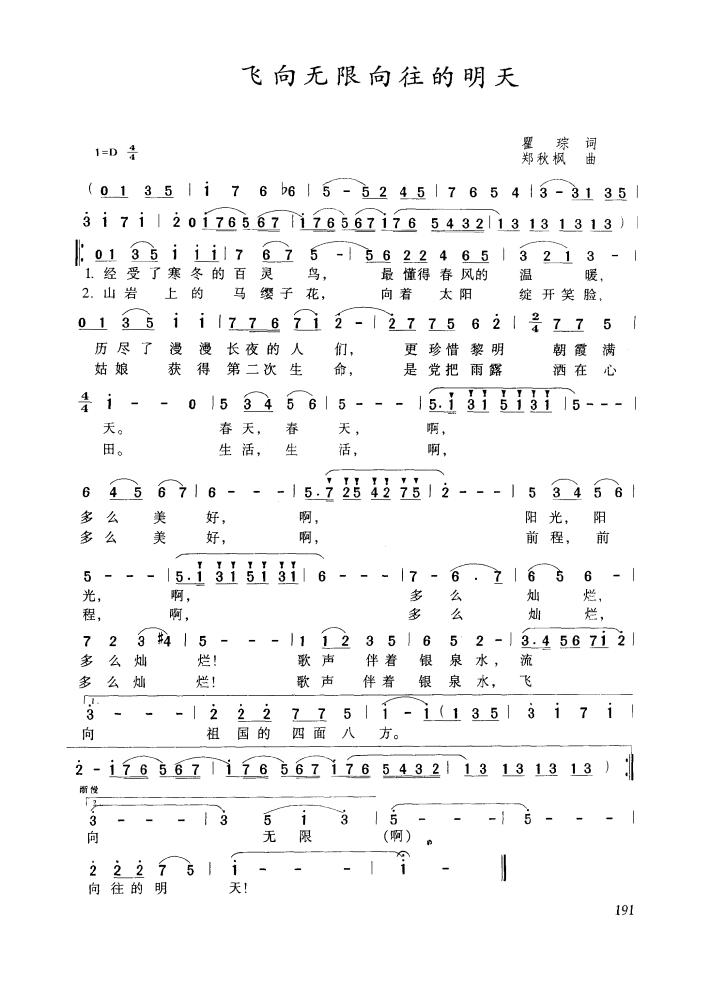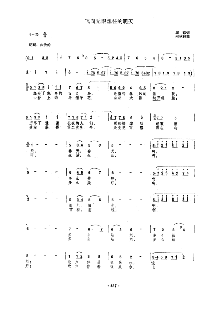 《飞向无限向往的明天(电影《海外赤子》插曲)》简谱 叶佩英