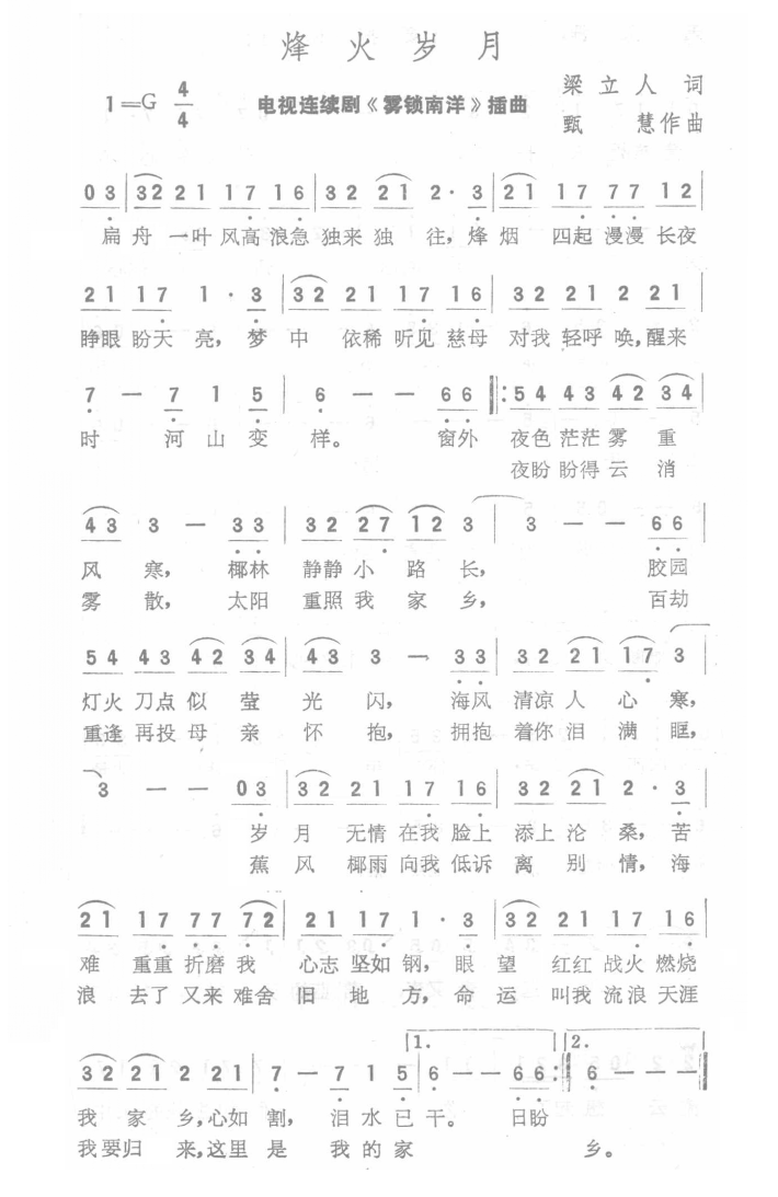 《烽火岁月(电视剧《雾锁南洋》插曲)》简谱 宋美玲