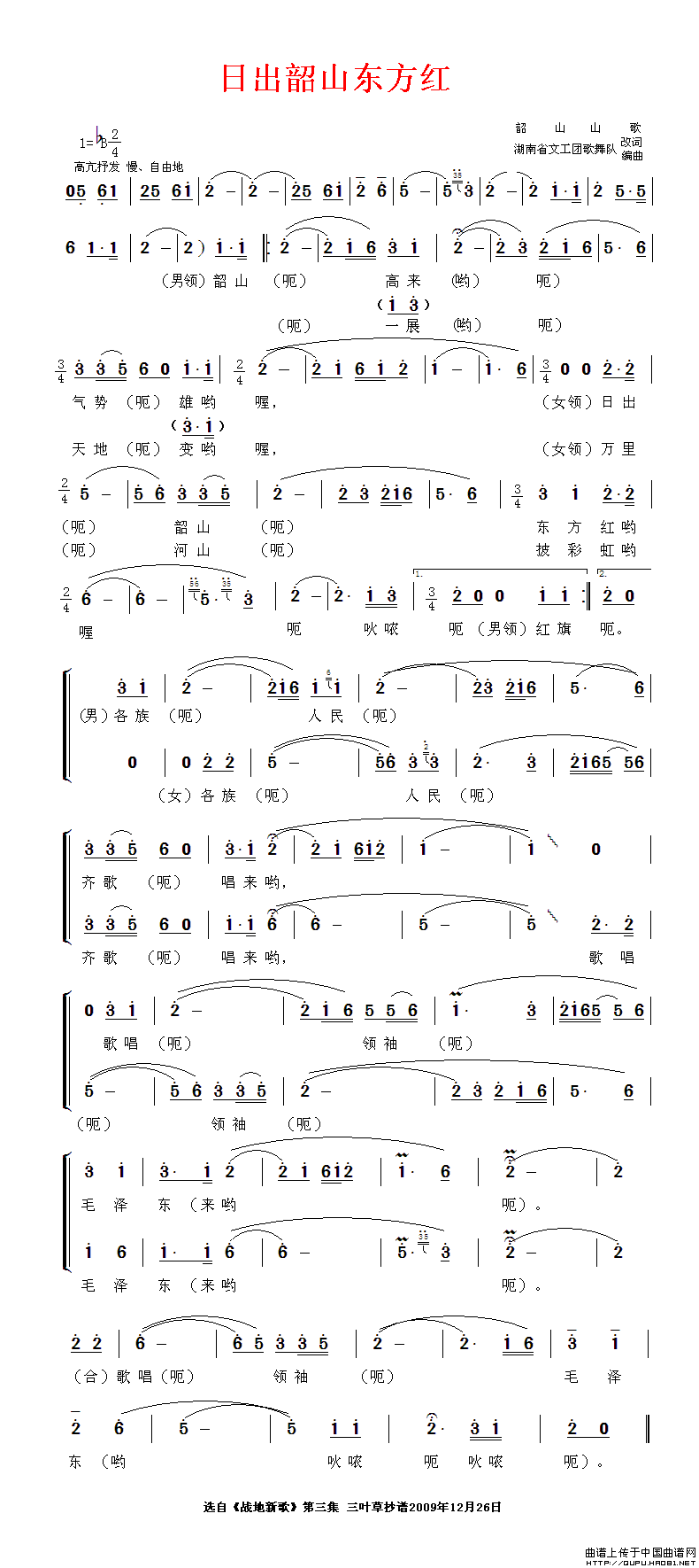 《日出韶山东方红》简谱