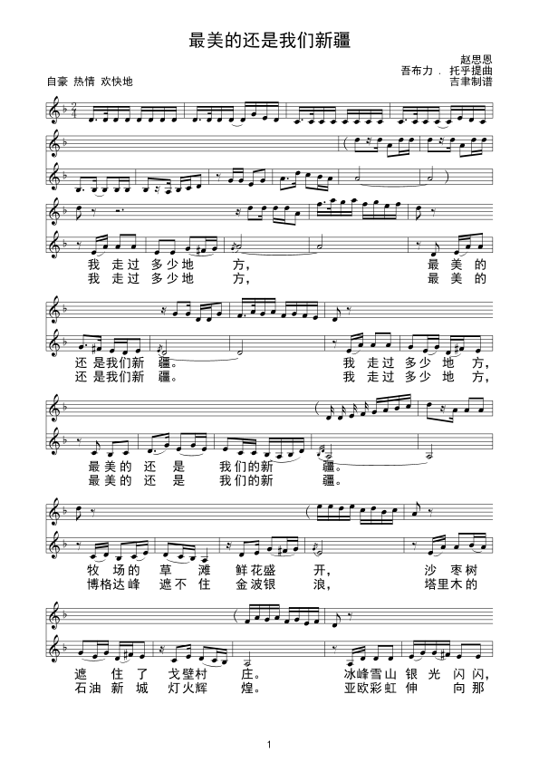 《最美的还是我们新疆(吾布力)线谱》简谱