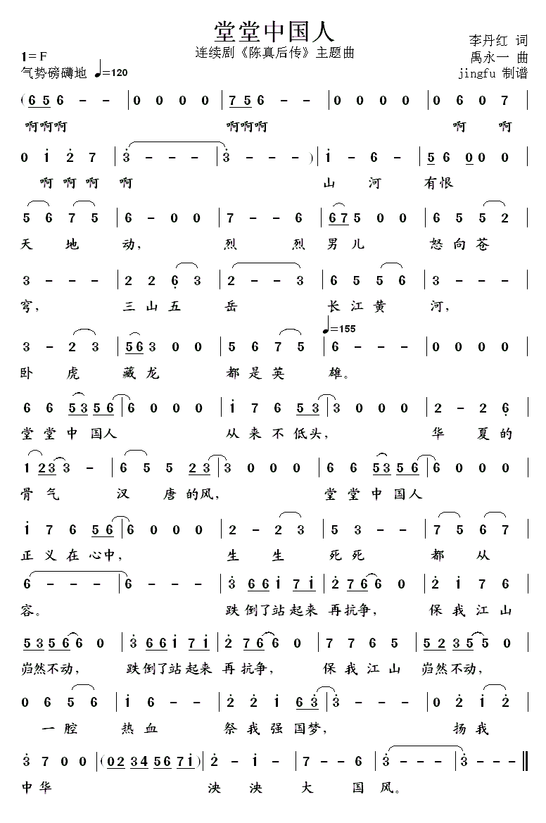 《堂堂中国人》简谱 韩磊