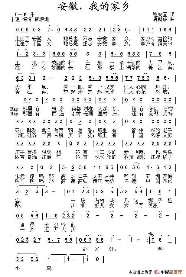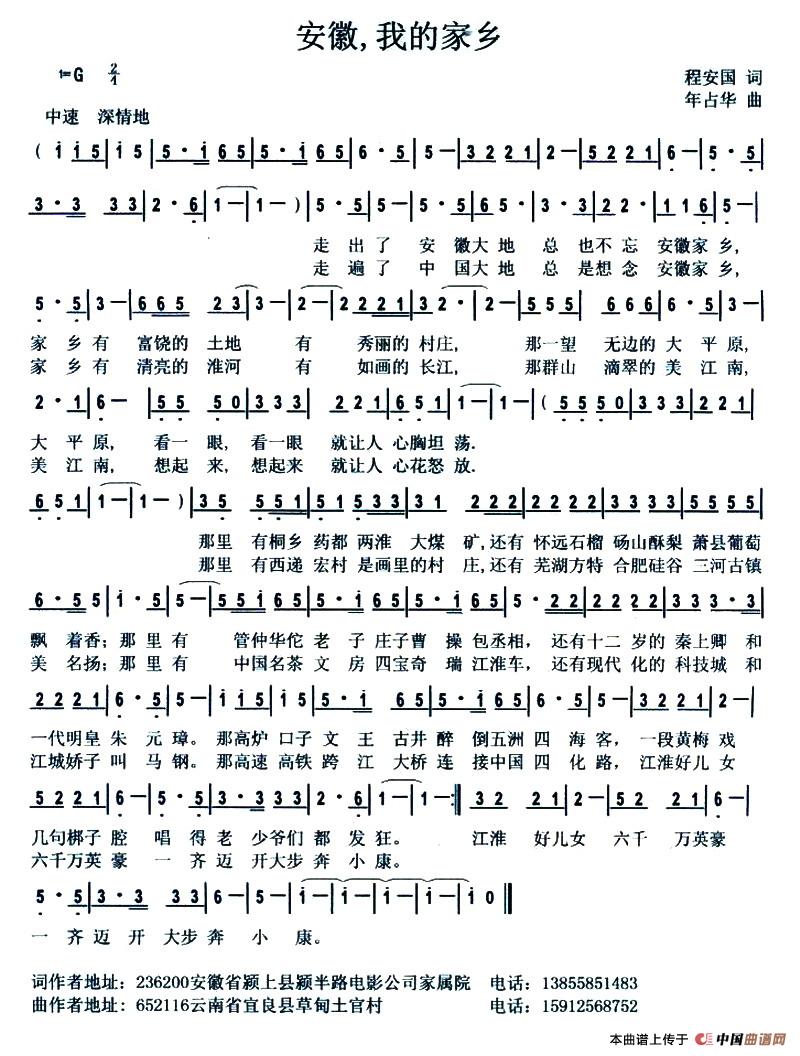 《安徽,我的家乡》简谱