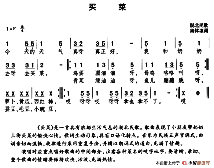 《买菜(湖北民歌)》简谱