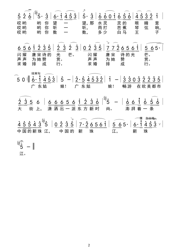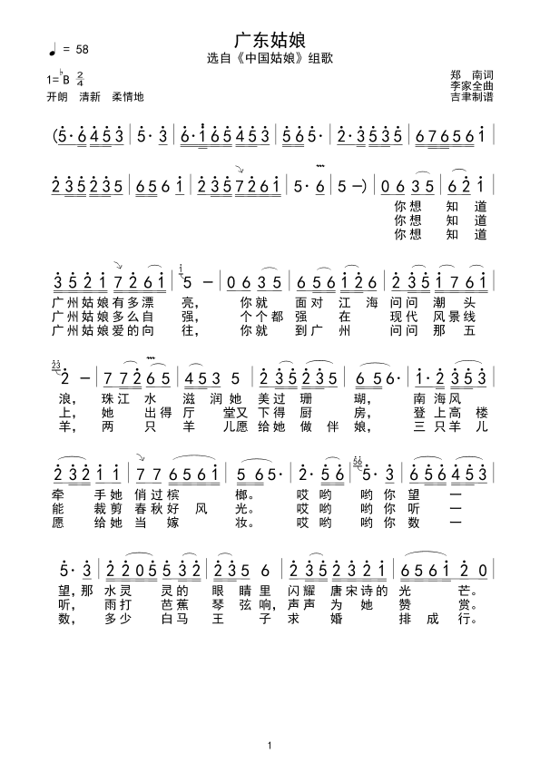 《广东姑娘》简谱