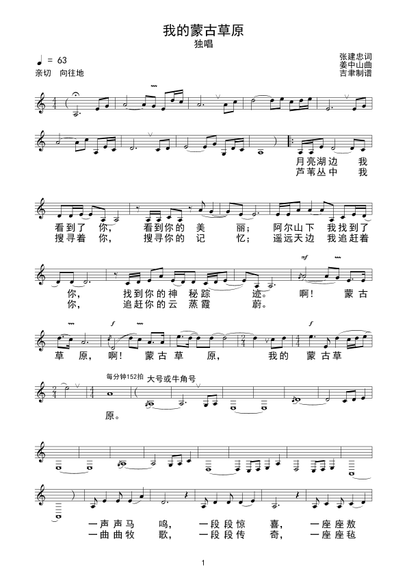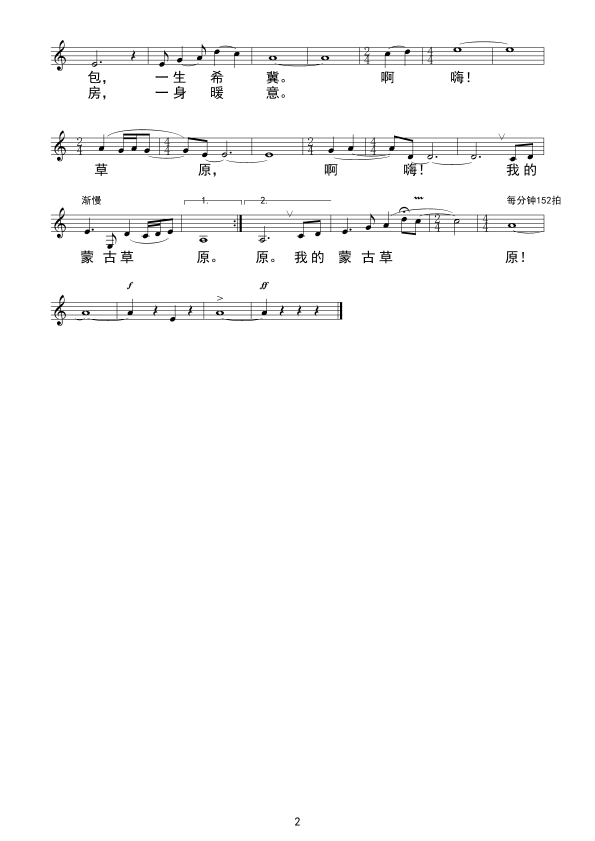 美丽的草原我的家(线谱)-内蒙古蒙族青年合唱团