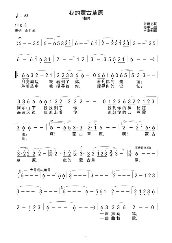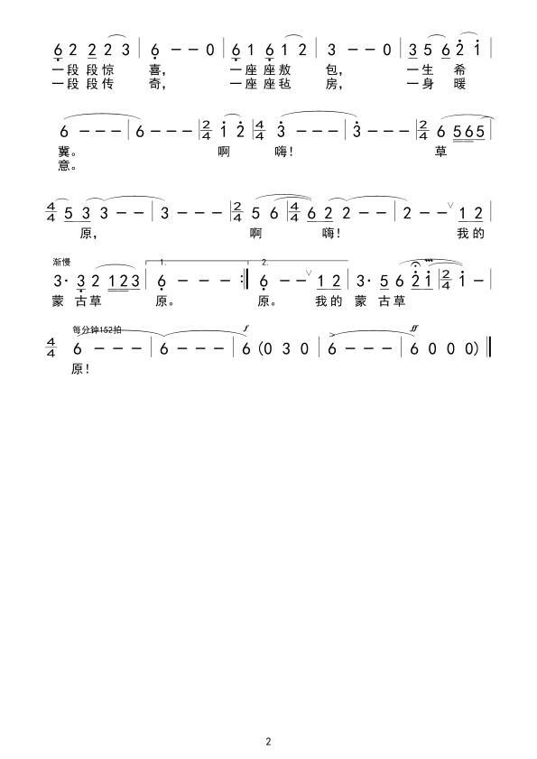 美丽的草原我的家(线谱)-内蒙古蒙族青年合唱团