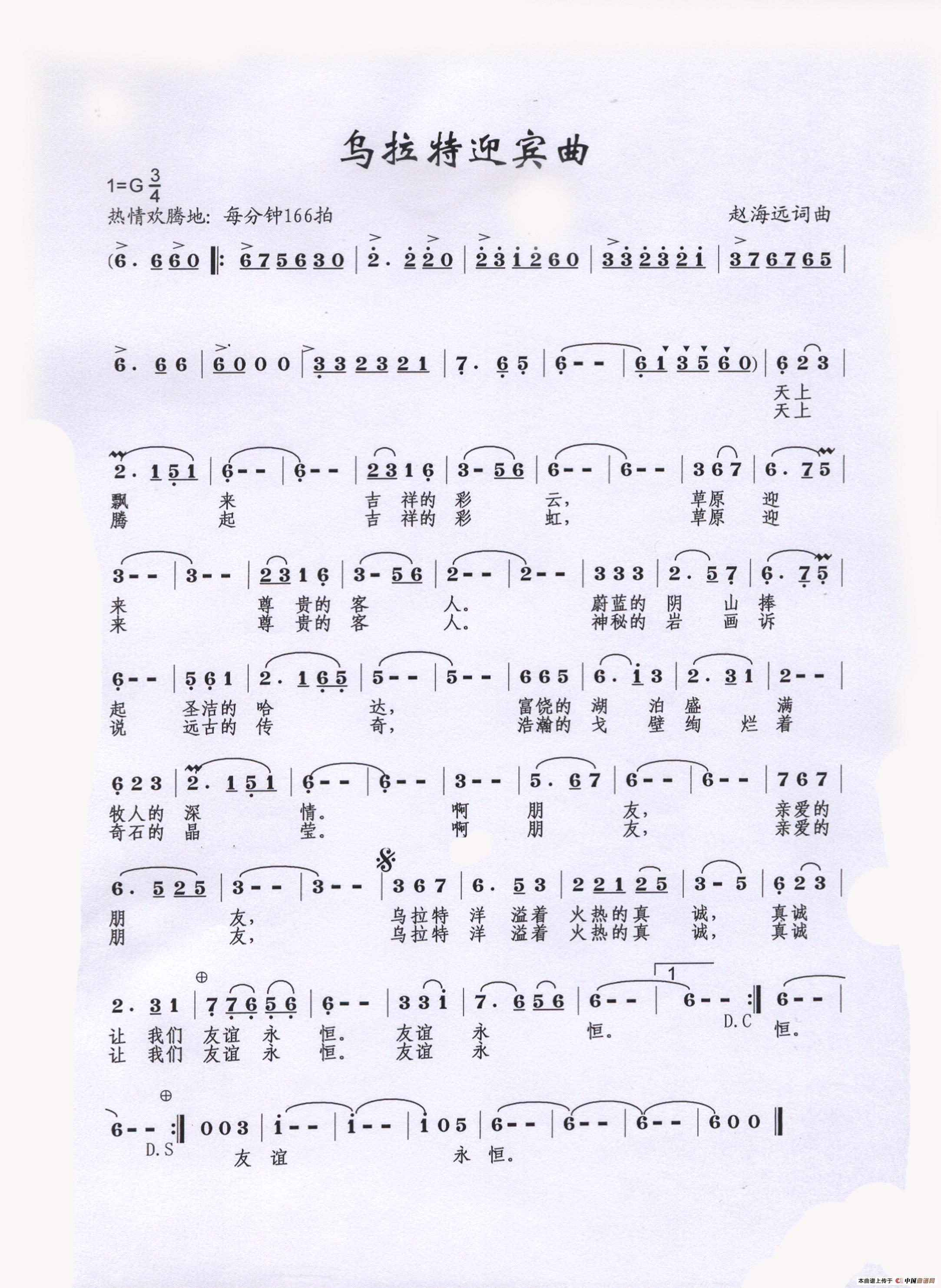 《乌拉特迎宾曲》简谱 内蒙古广播合唱团