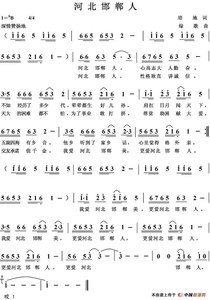 《河北邯郸人》简谱