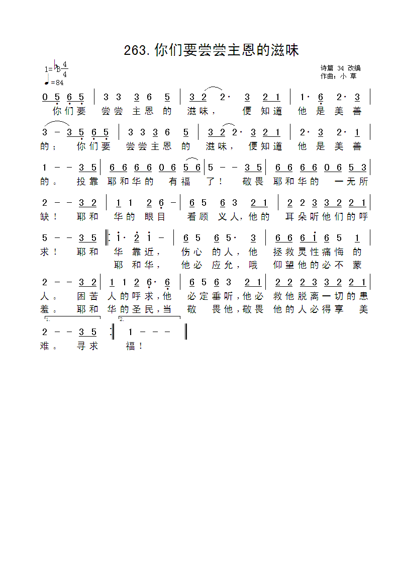 《我们要尝尝主恩的滋味》简谱