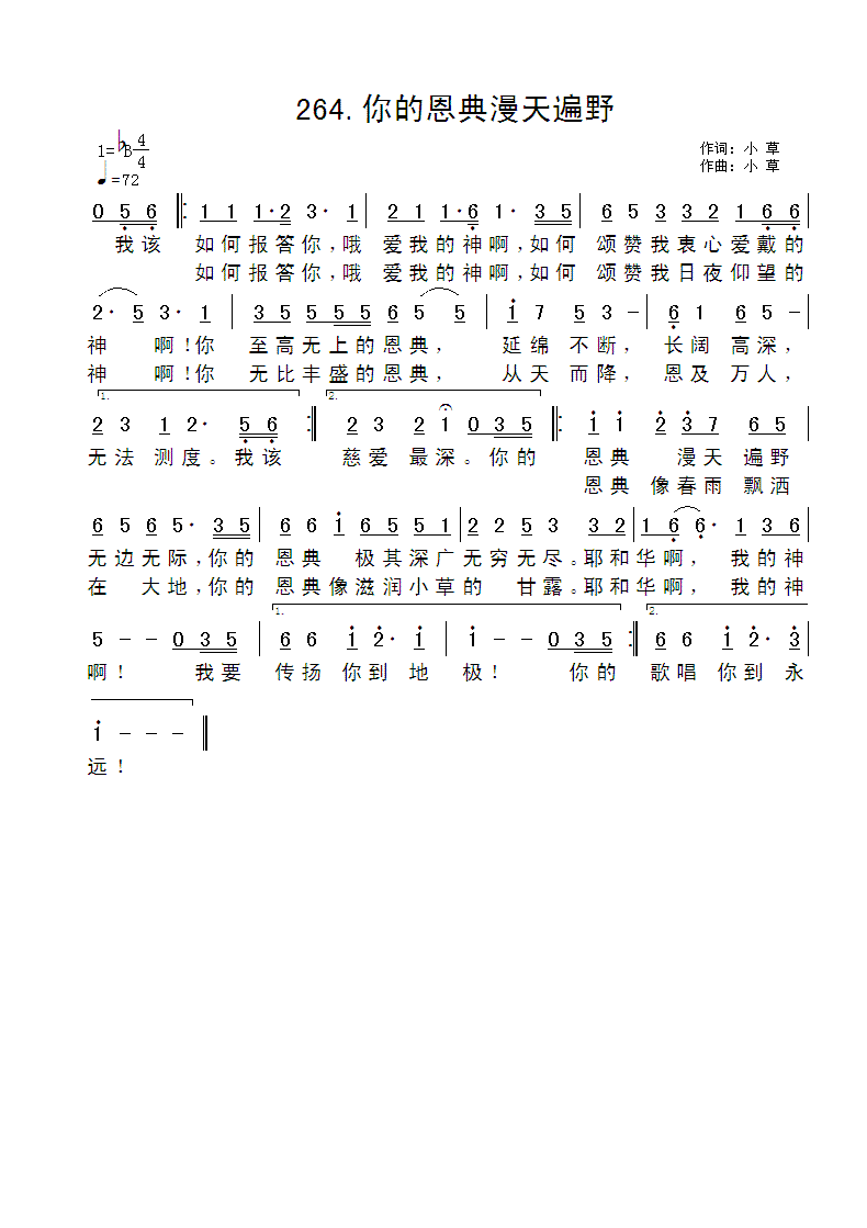 《你有恩典漫天遍野》简谱