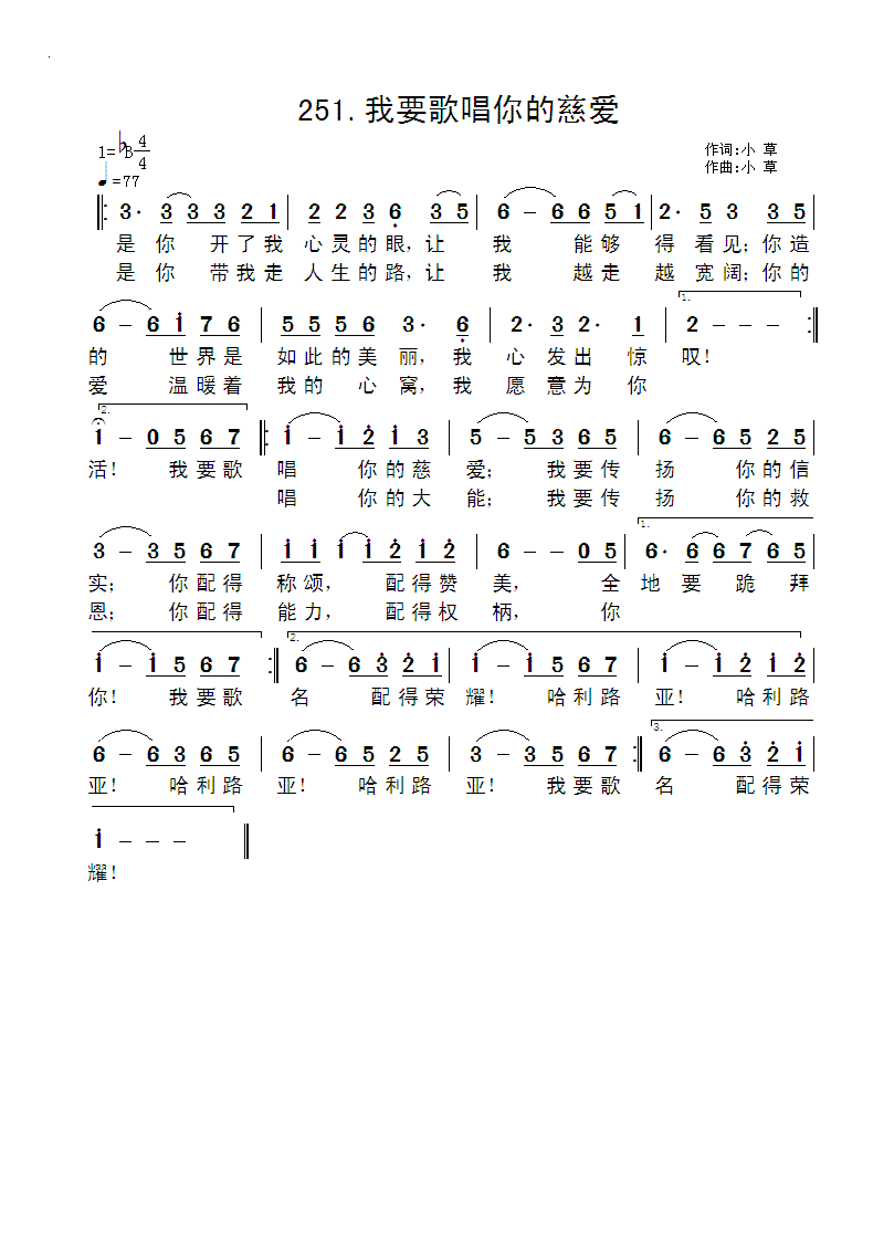 《我要歌唱你的慈爱》简谱