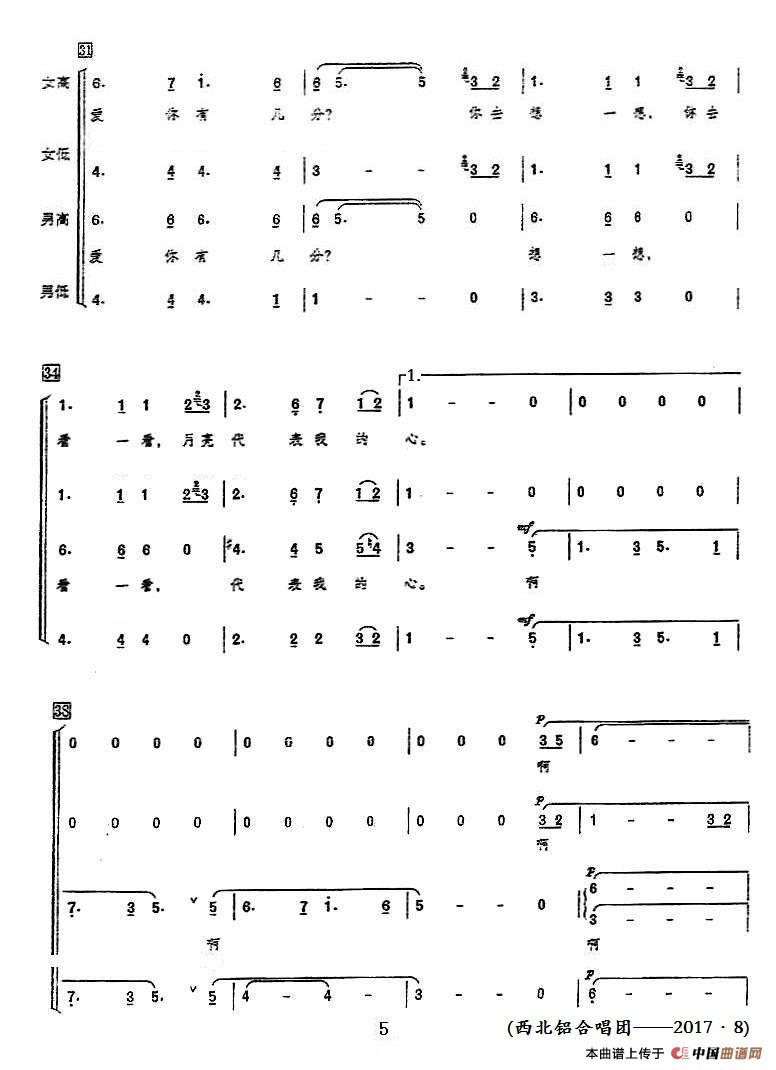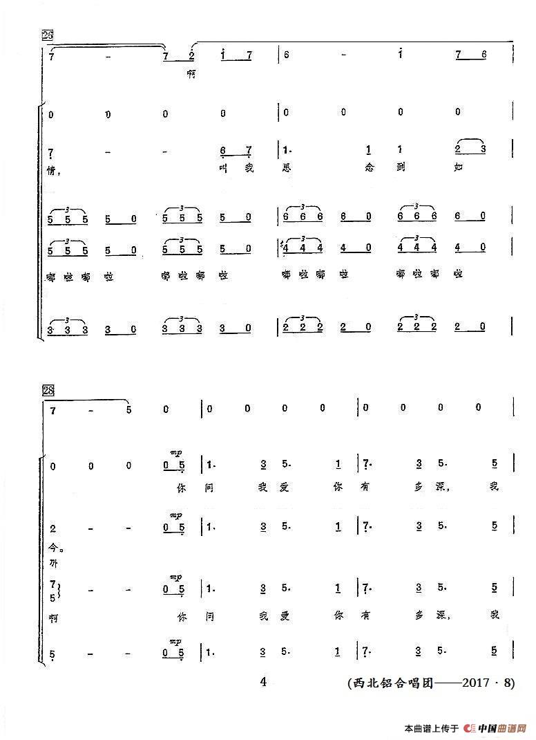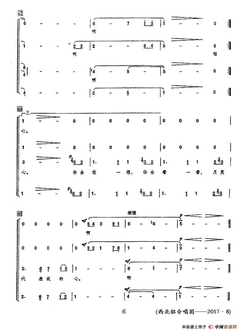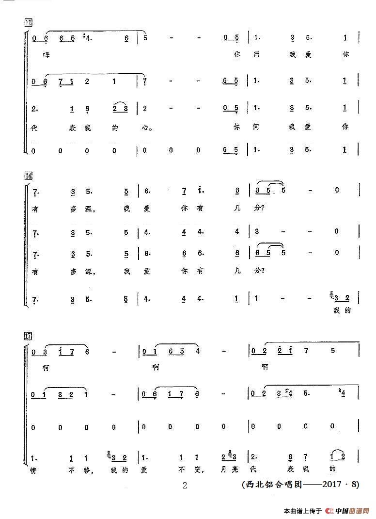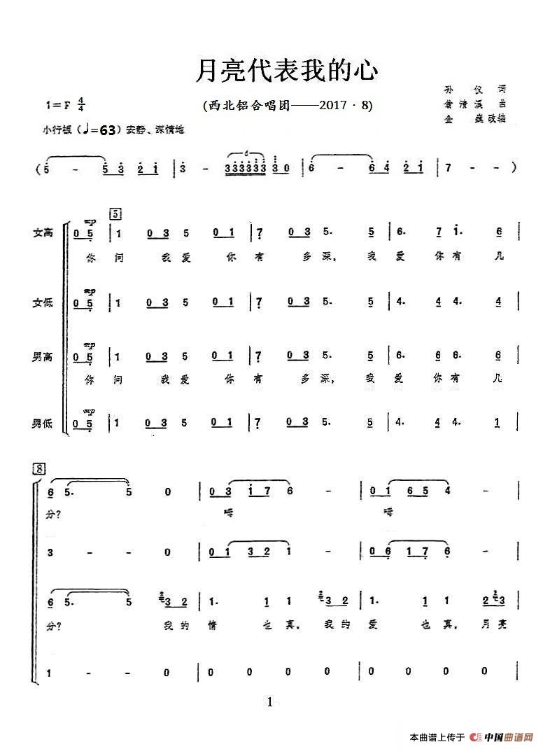 《月亮代表我的心(领唱+混声合唱)》简谱