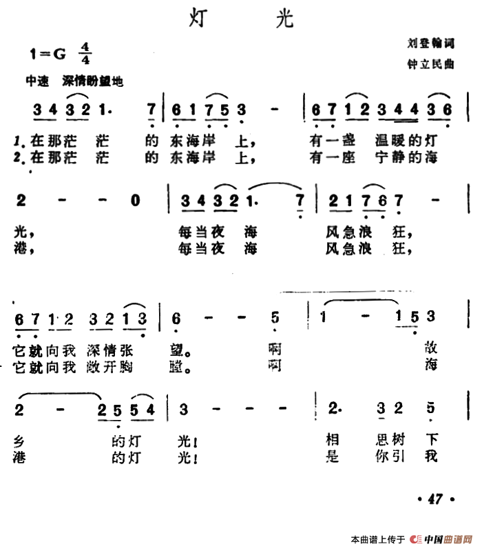 《灯光》简谱