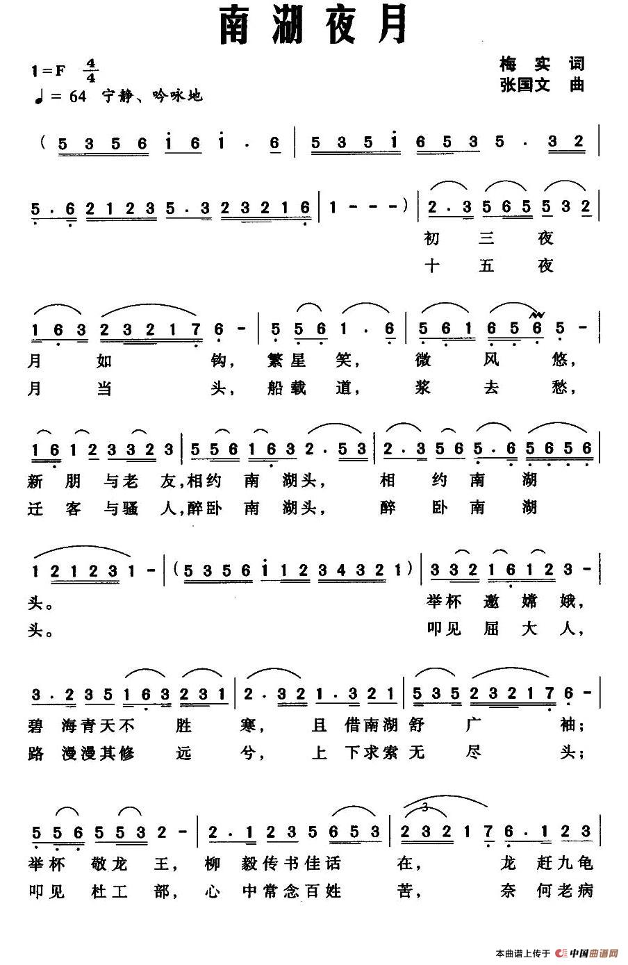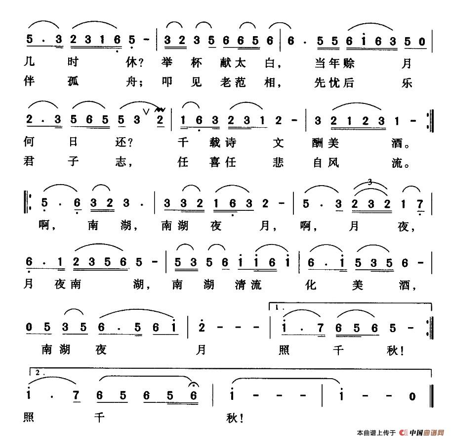 《南湖夜月》简谱