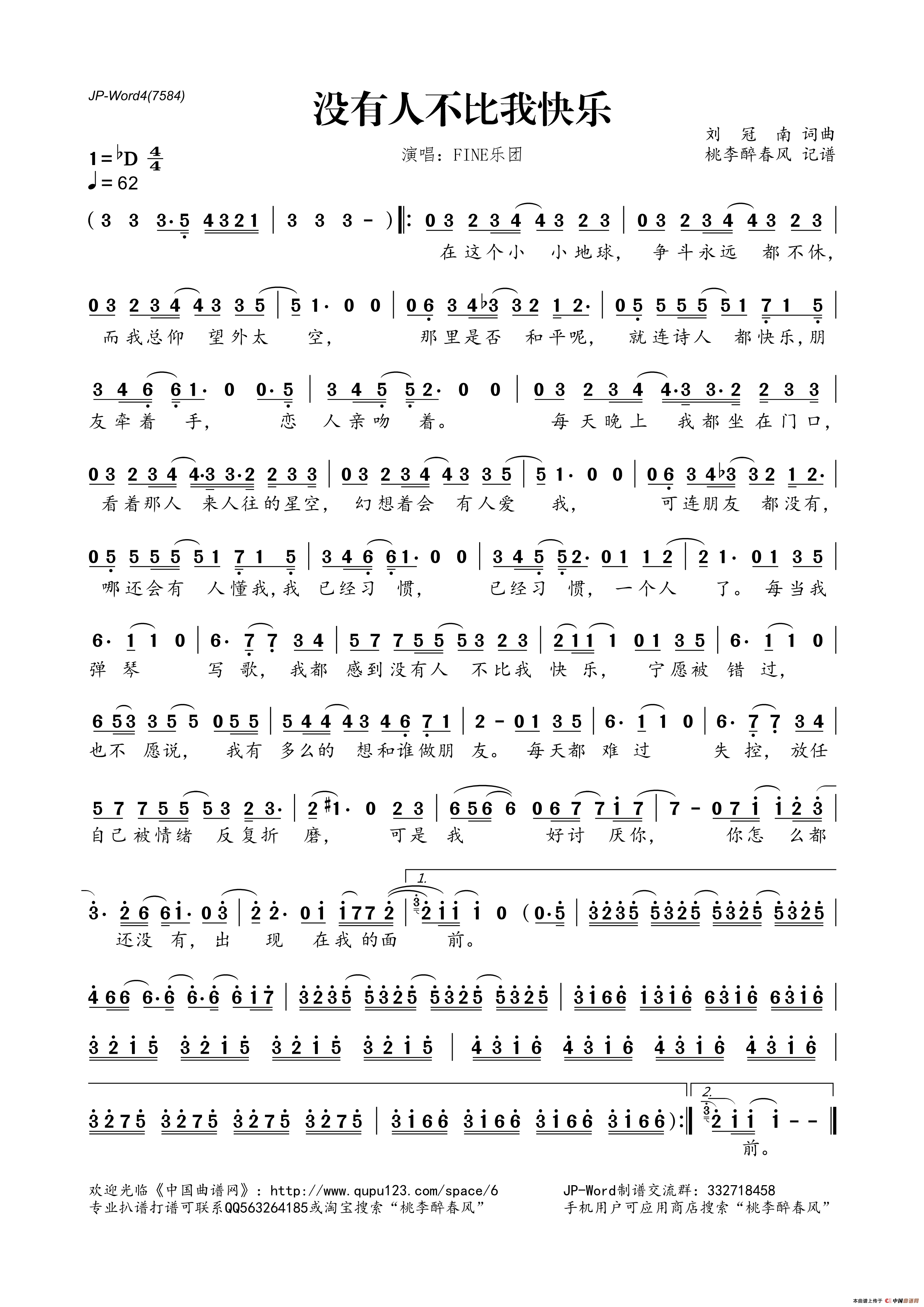 《没有人不比我快乐》简谱 FINE乐团 点这里
