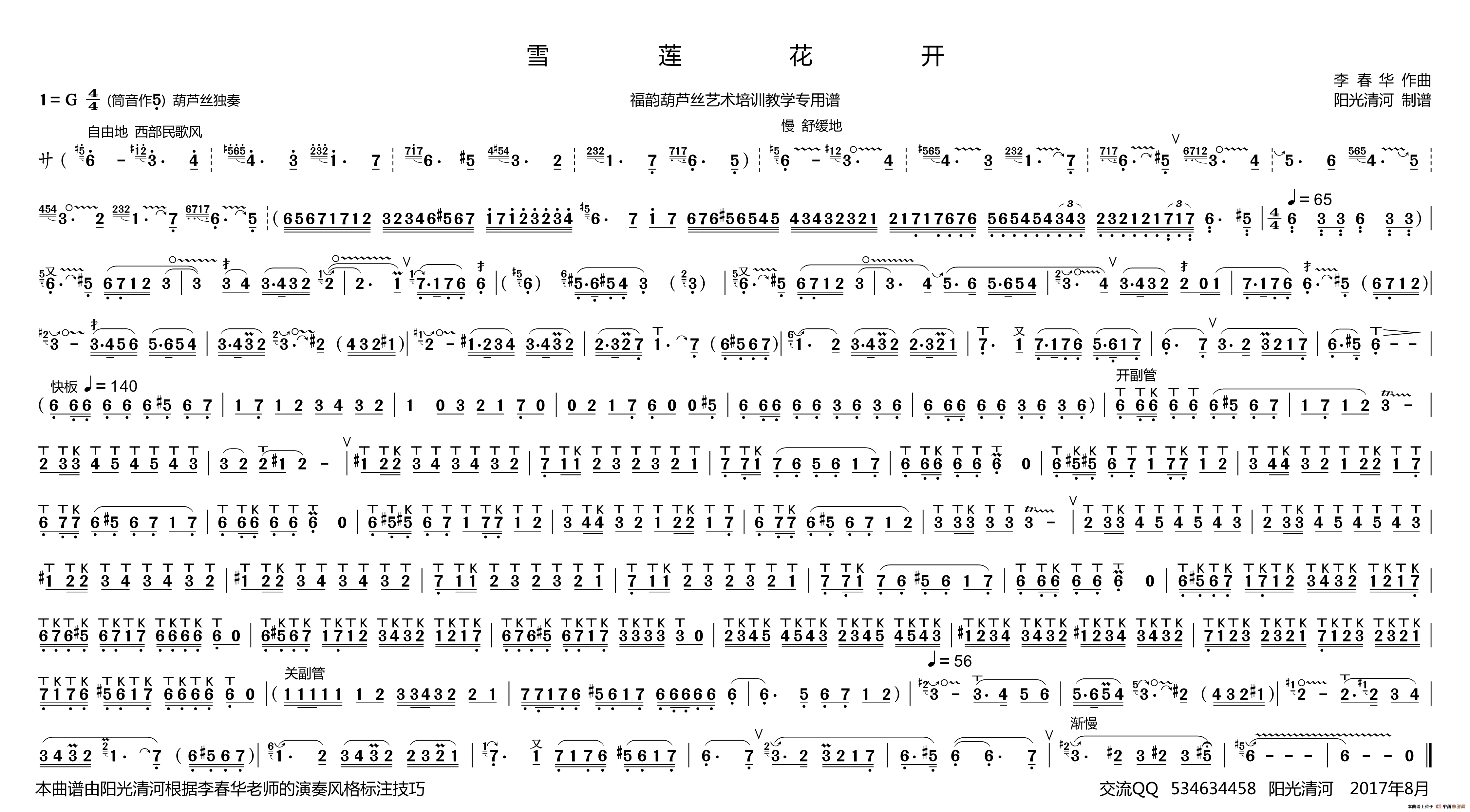 《雪莲花开简谱( 葫芦丝谱 李春华版)》简谱 李春华