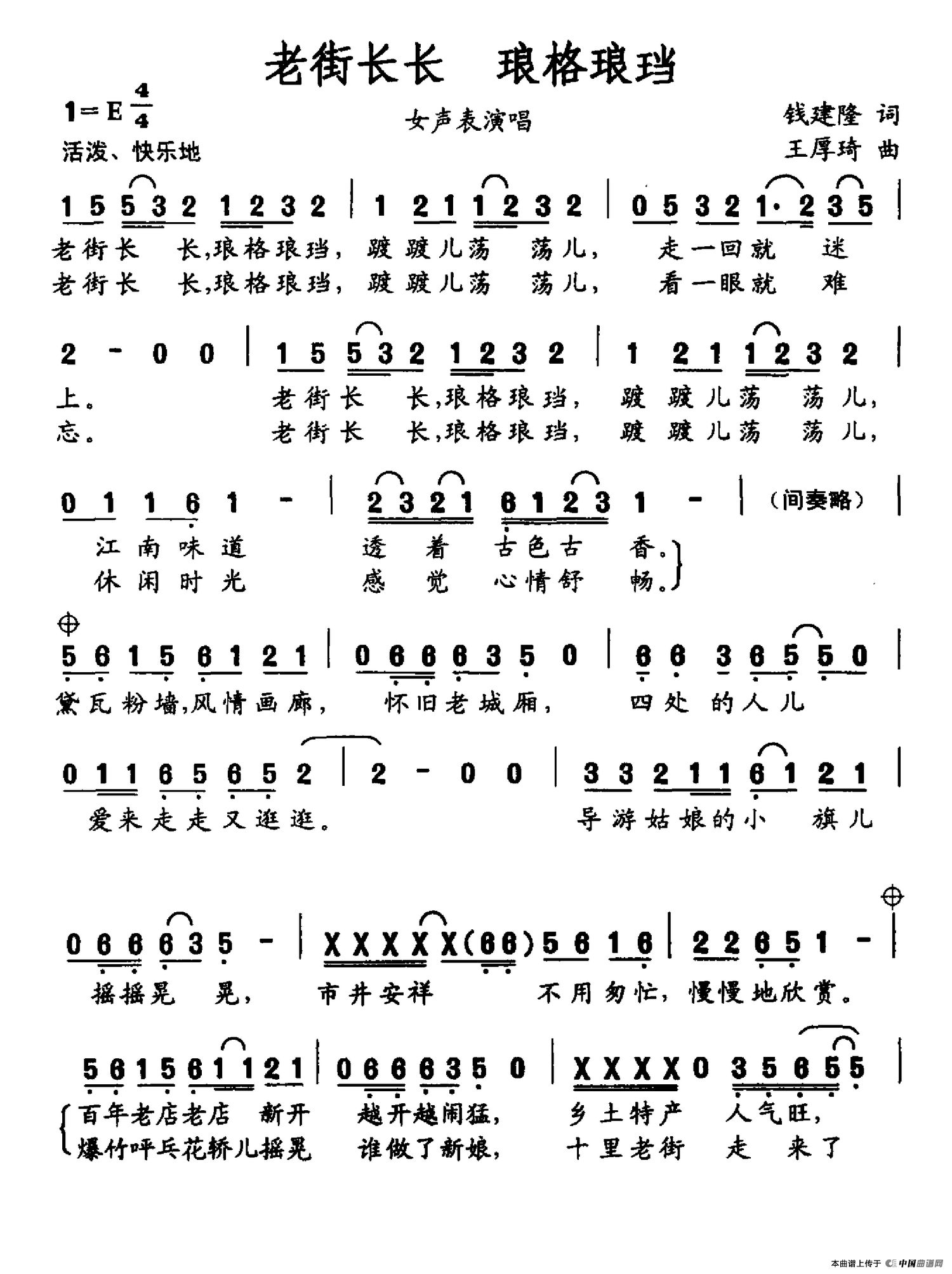 《老街长长 琅格琅珰》简谱
