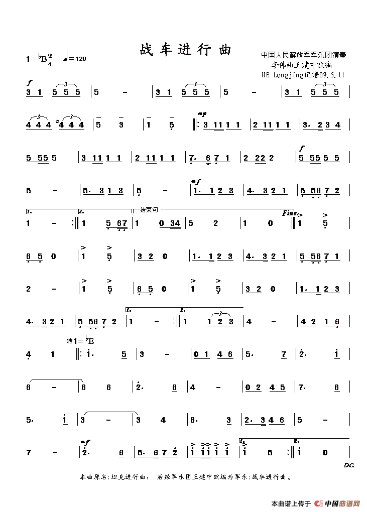 《战车进行曲(军乐旋律简谱)》简谱 军乐团