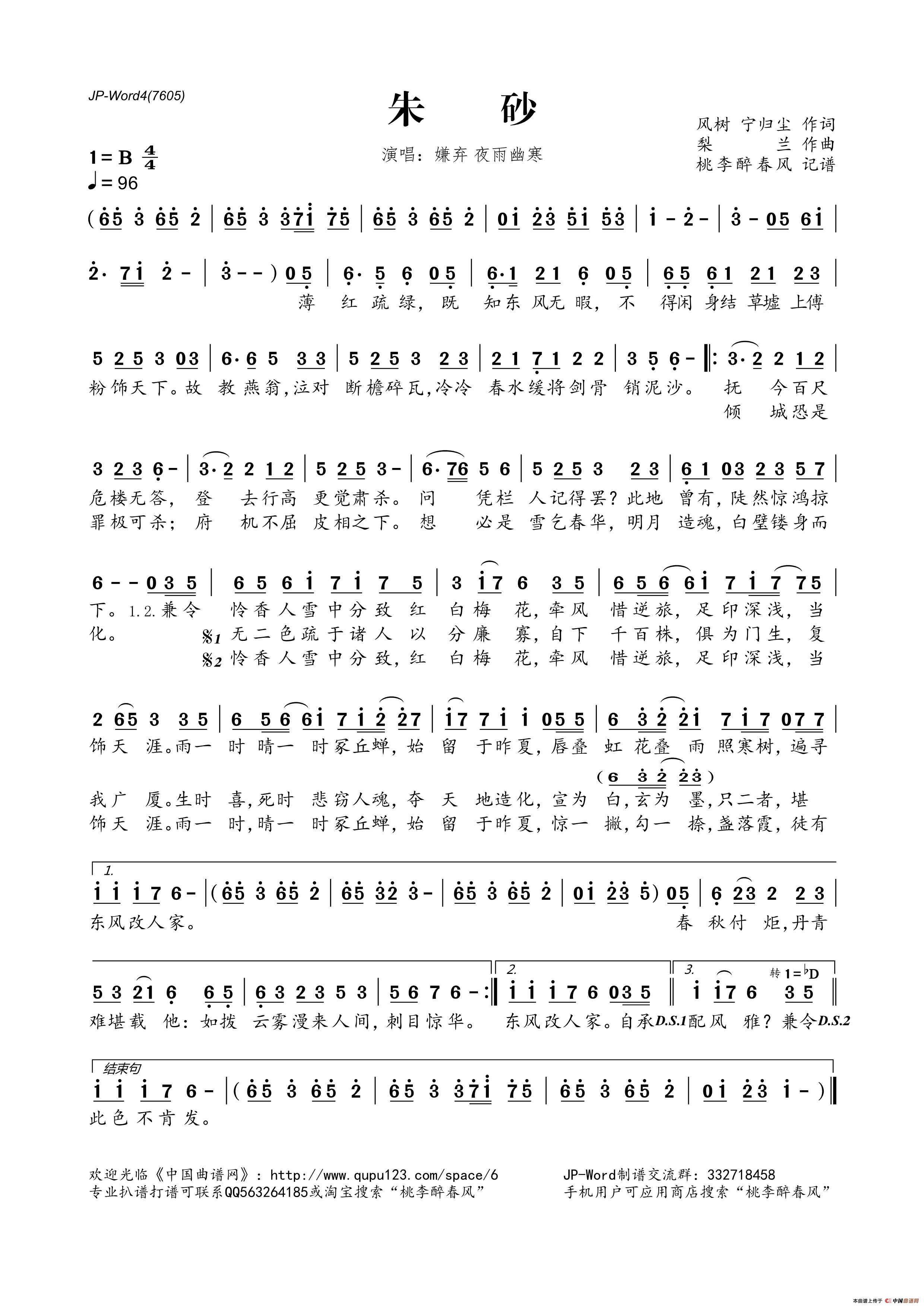 《朱砂》简谱 嫌弃/夜雨幽寒