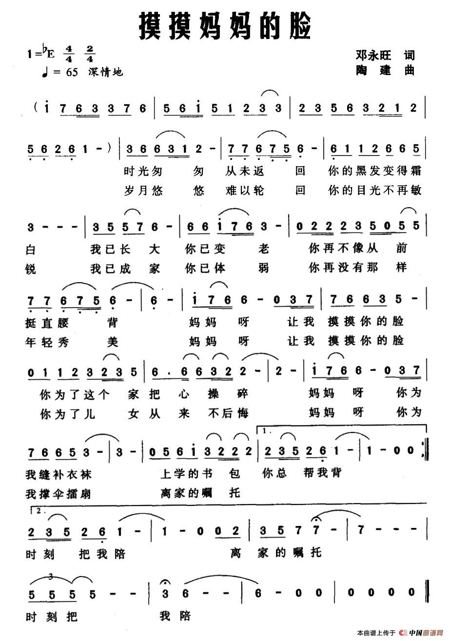 《摸摸妈妈的脸》简谱