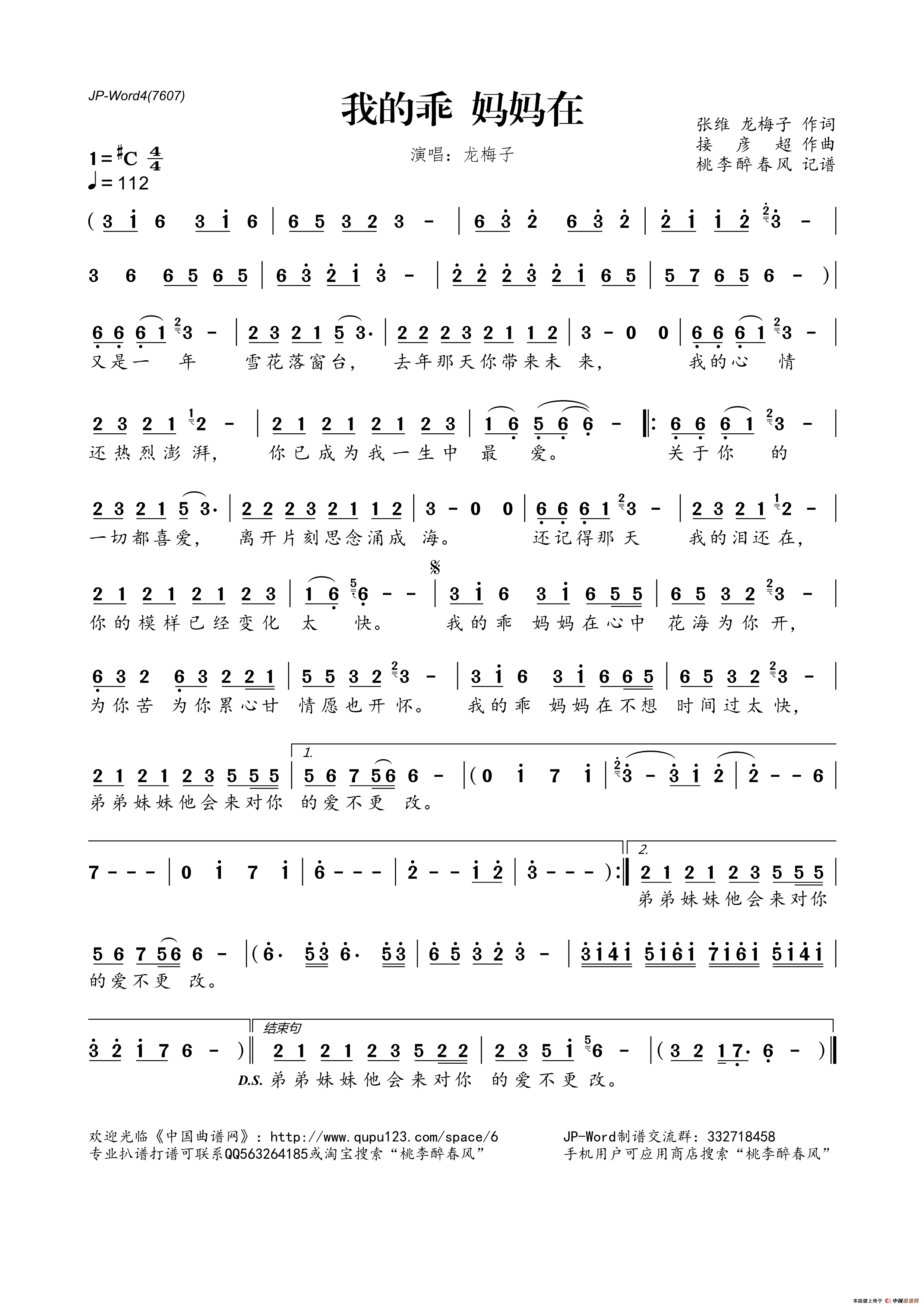 《我的乖 妈妈在》简谱 龙梅子