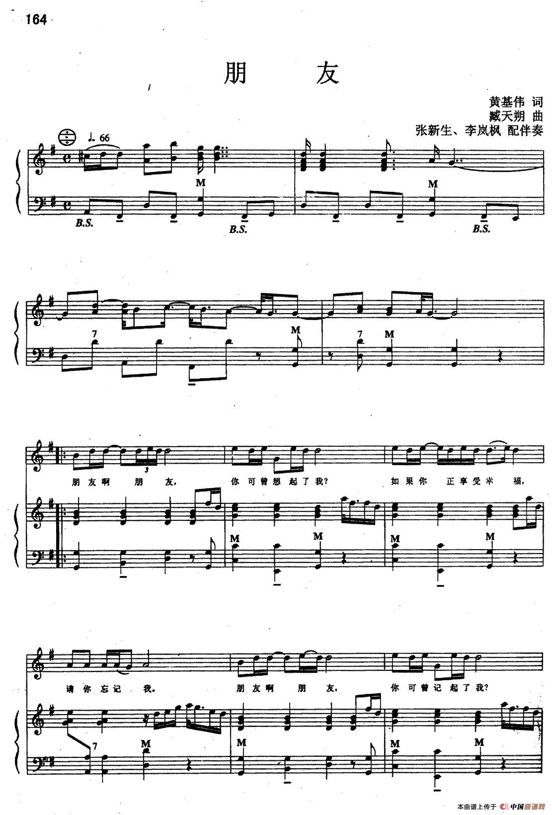 《朋友(黄基伟词 臧天朔曲、手风琴伴奏谱)》简谱