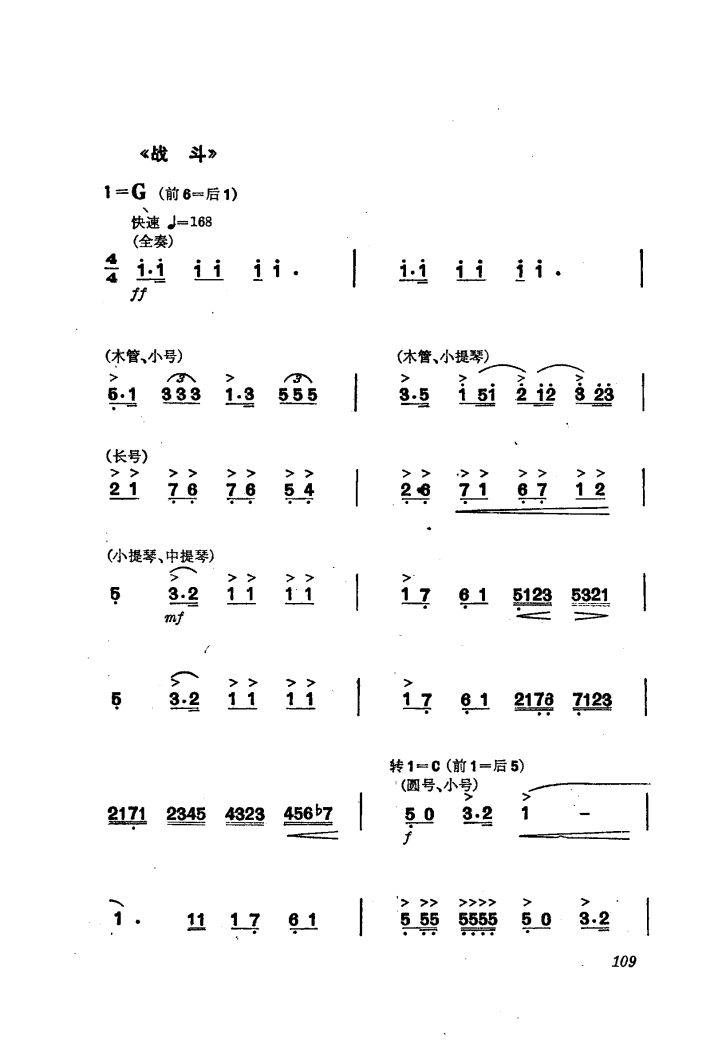 《交响音乐智取威虎山 8 滑雪、战斗(器乐合奏)》简谱 上海乐团